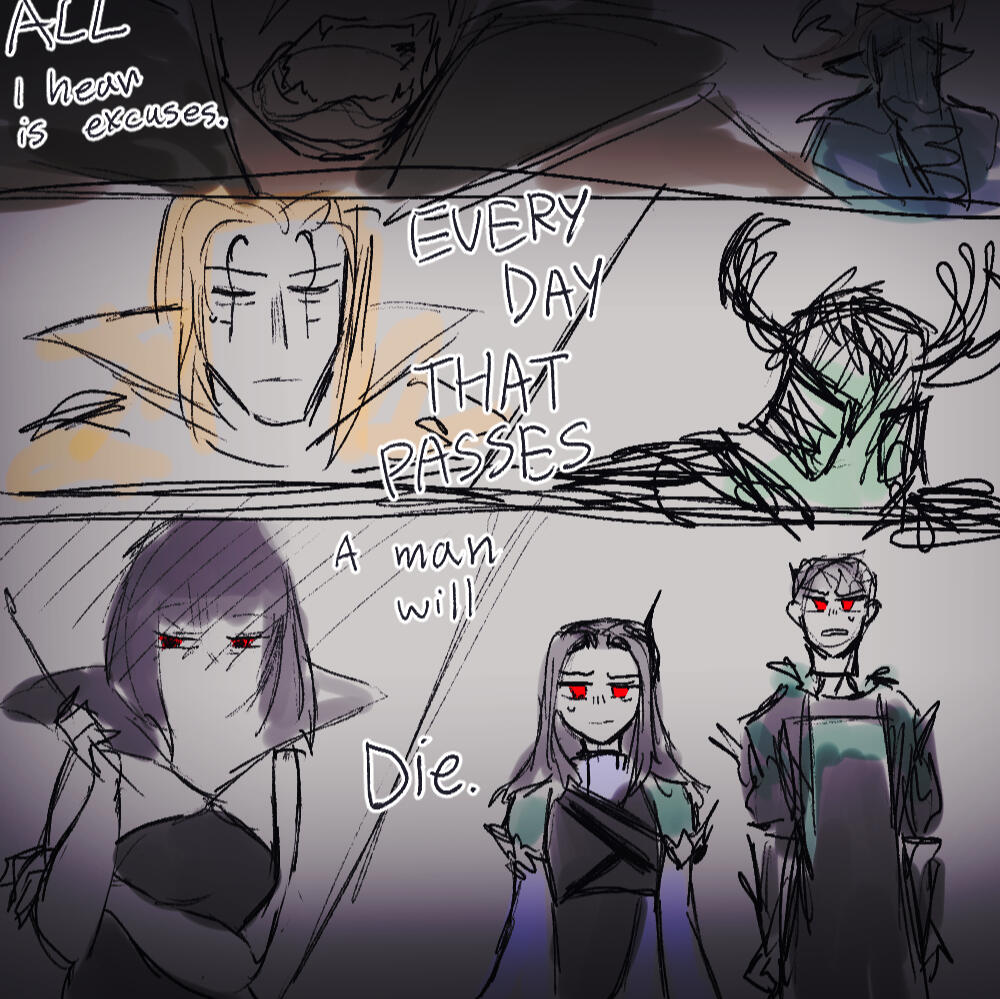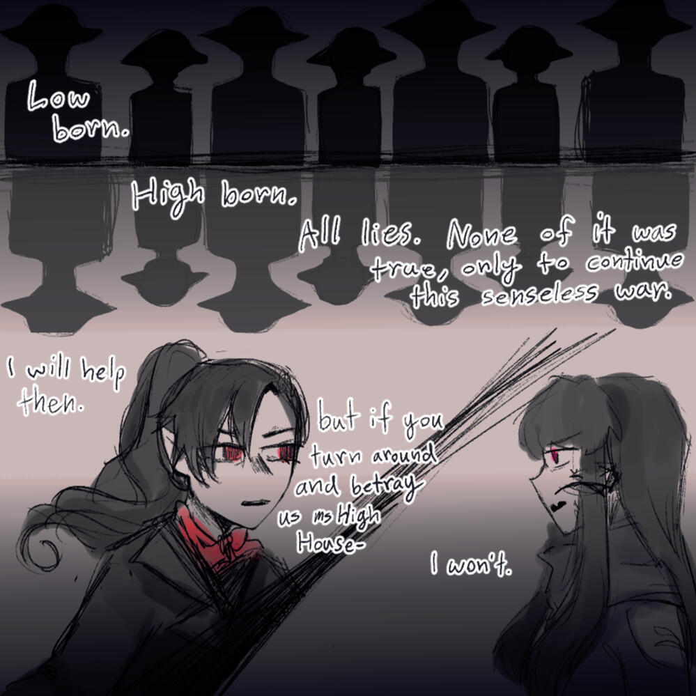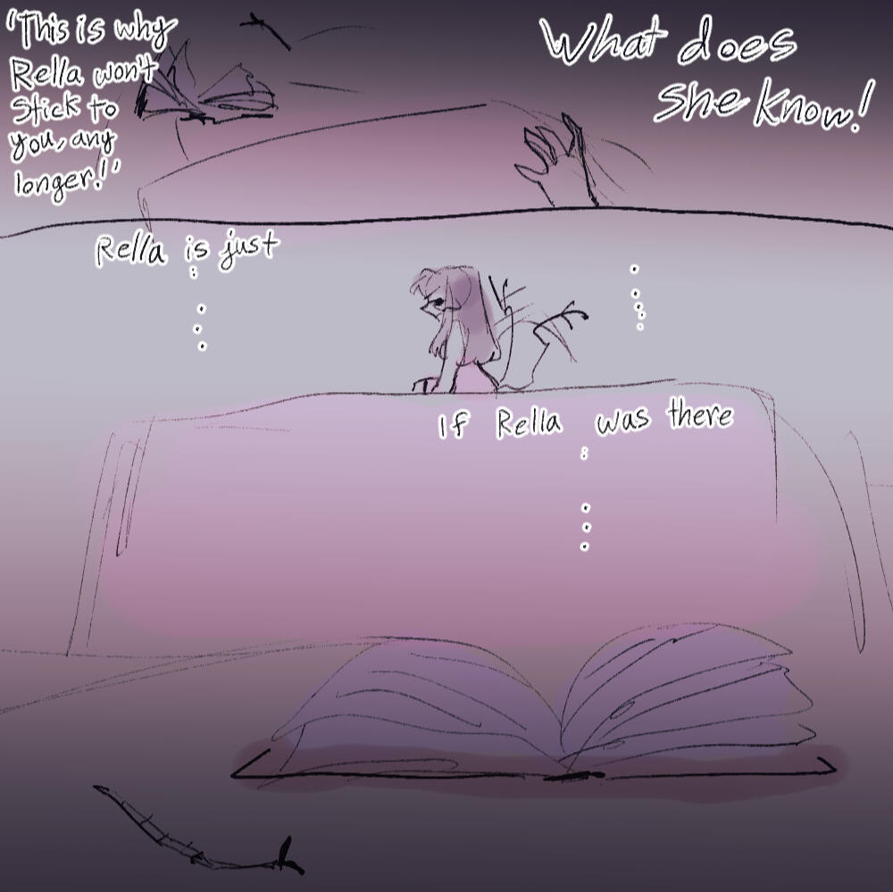 “-Don’t!”Not backing down, yelling out a statement that could not be ever easily taken back.“Moenbryda would still be here! He would be with her! Not you!”Silence took over the training room, Xiela’s words were so cruel it twisted something within Rella so deeply.
