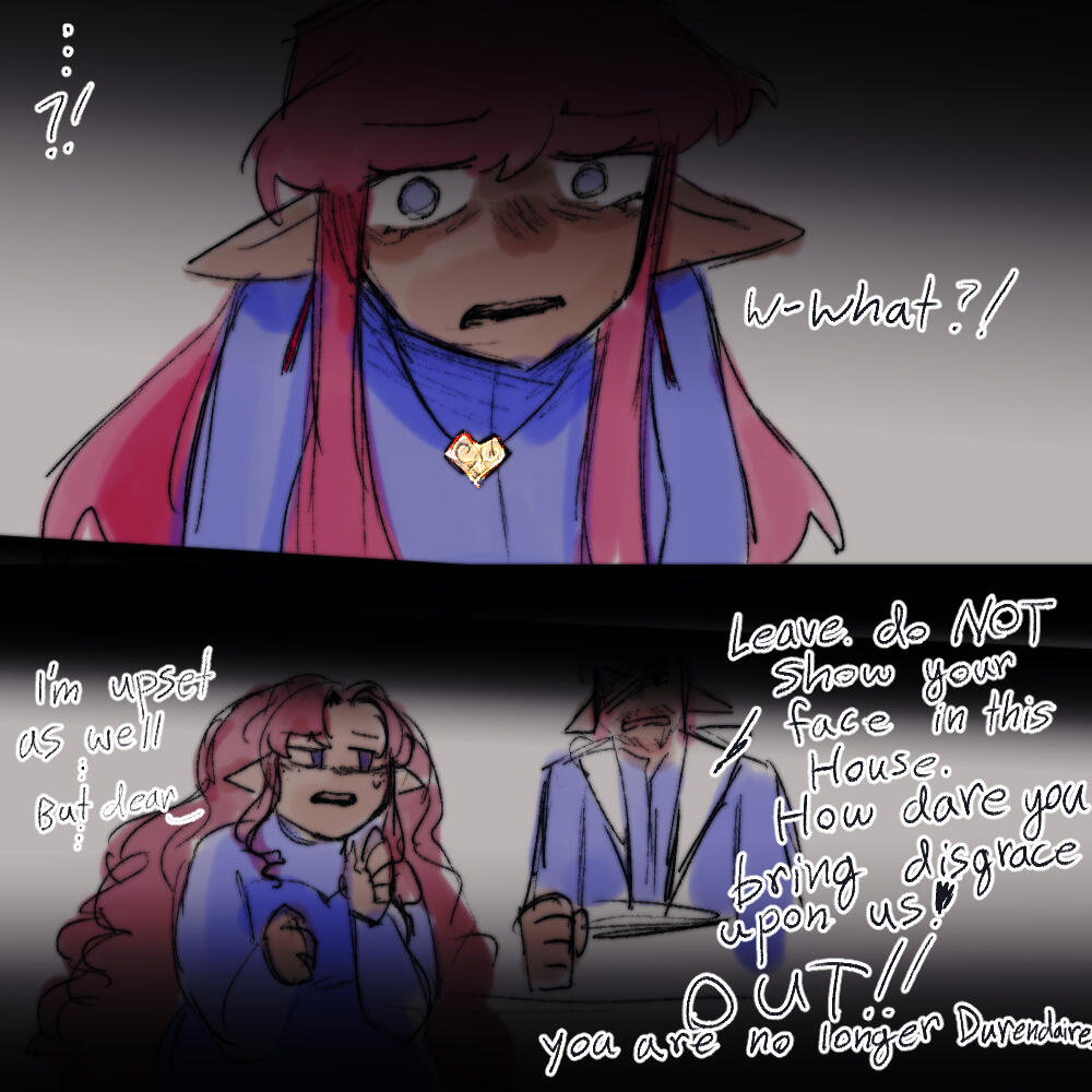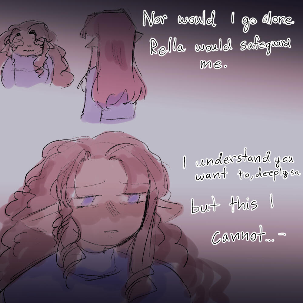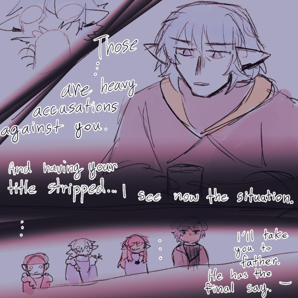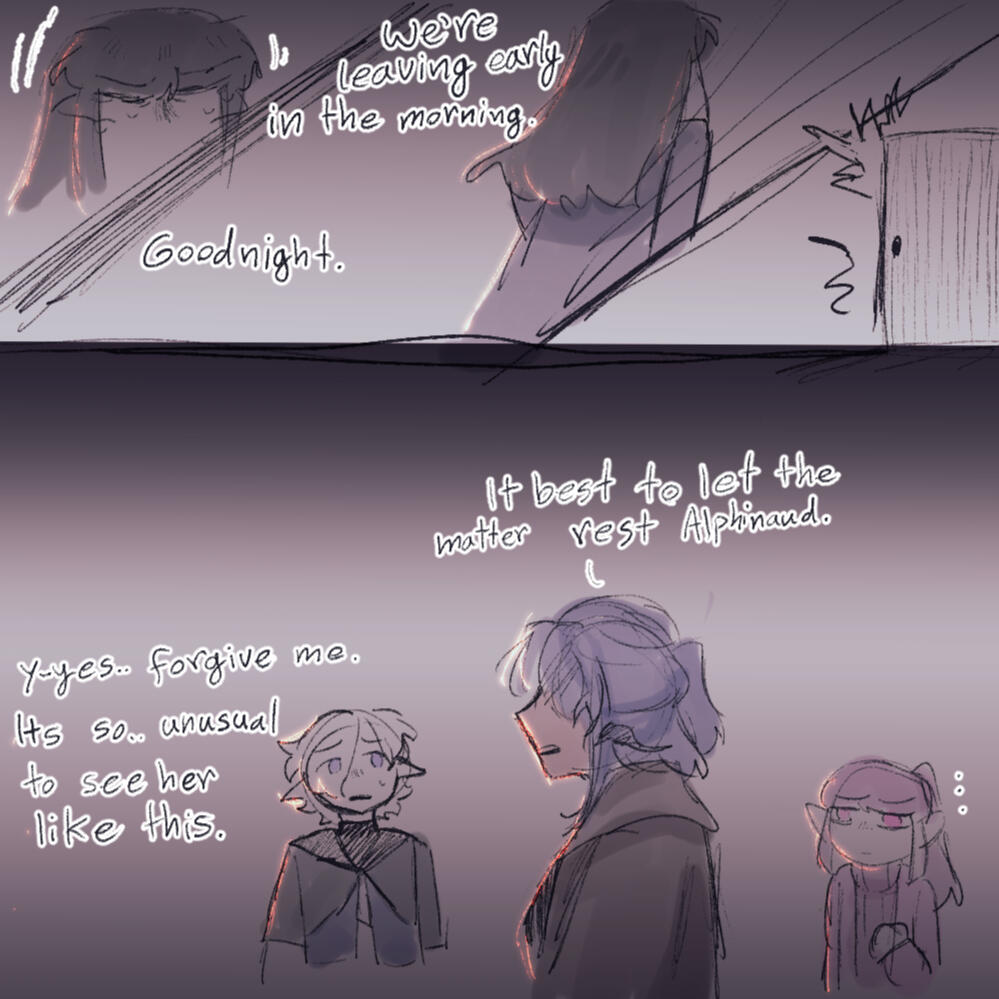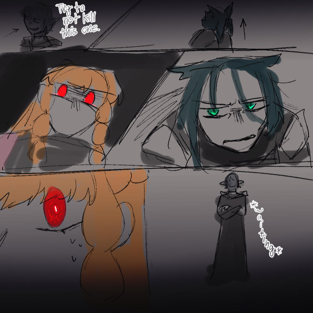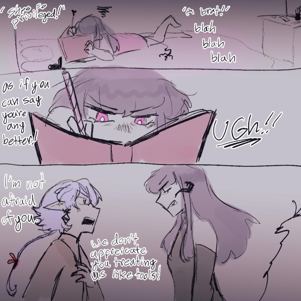 “You always seem to criticize me, rather than help me.” Starting to get back up from the ground readying her next offensive.“I'm trying to help you, Xiela.” Rella's voice still neutral, her demeanor unphased by her aggressive companion.“What about…” swinging another kick and missing, “...in actual battle?! You don't help fight, and now…" Her voice became even more heated, “...you're barely even there!!”“Xiela, you asked me not to assist. I'm tired of watching from the sidelines, and I would rather be somewhere where I can be of use.”“And what? You're just going to listen to whatever I say?""I made a promise to you." Rella said with a slight sadness."You speak of a promise I don't even remember! And for what..?! You leave my fights to be with him? To be with Urianger?! Is he really just your friend? What is he to you, that I'm not?!”“Xiela.” Rella's calm demeanor, turning into irritation. Making it clear in her tone and a sign to Xiela to let it go."You would follow in his lies if Urianger asked you to, wouldn't you?” Xiela yelled.Not a moment passed, Rella said with no hesitation, “I would.““I hate you!! I hate him! I hate everyone in this stupid place!!” Continuing to throw her tantrum like a child who didn't get their way. He was getting all of Rella's attention that Xiela wanted for herself. Rella was reaching her limit with her.Staring daggers, walking closer to Rella, her hand pointing at her accusingly, Xiela threw Rella's warning to the side.“You think you're so much better than me! When actually, you're hiding what you really are! Does he know?!” Xiela kept poking at Rella's emotional wounds to get a reaction.