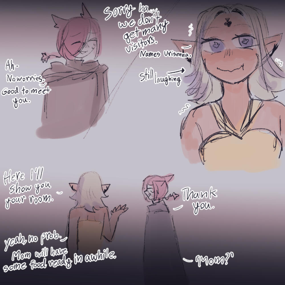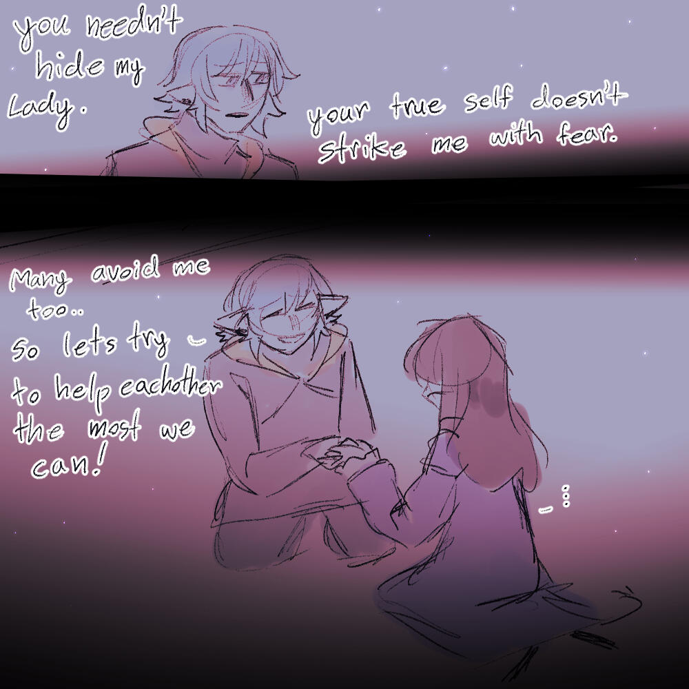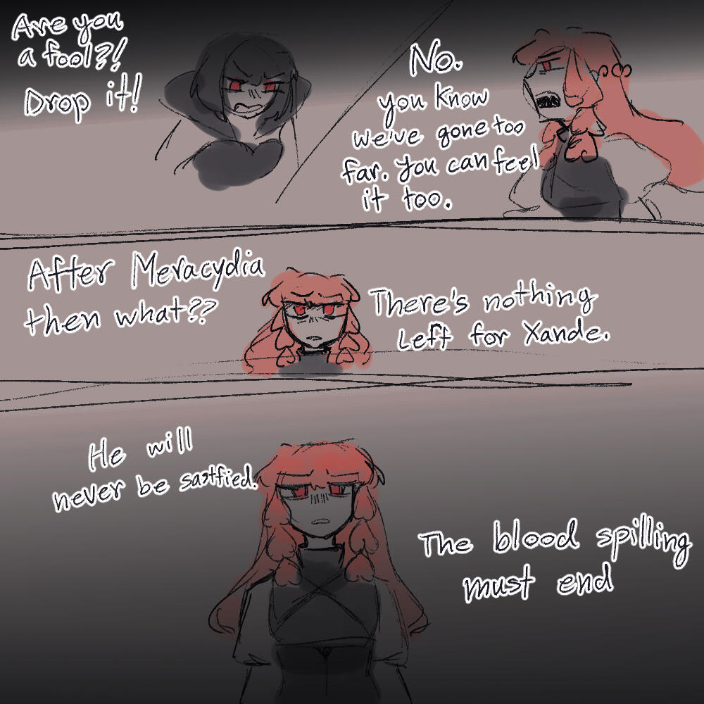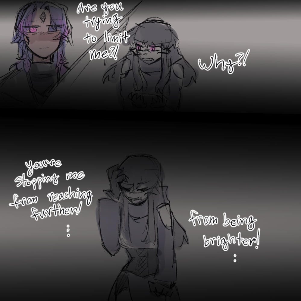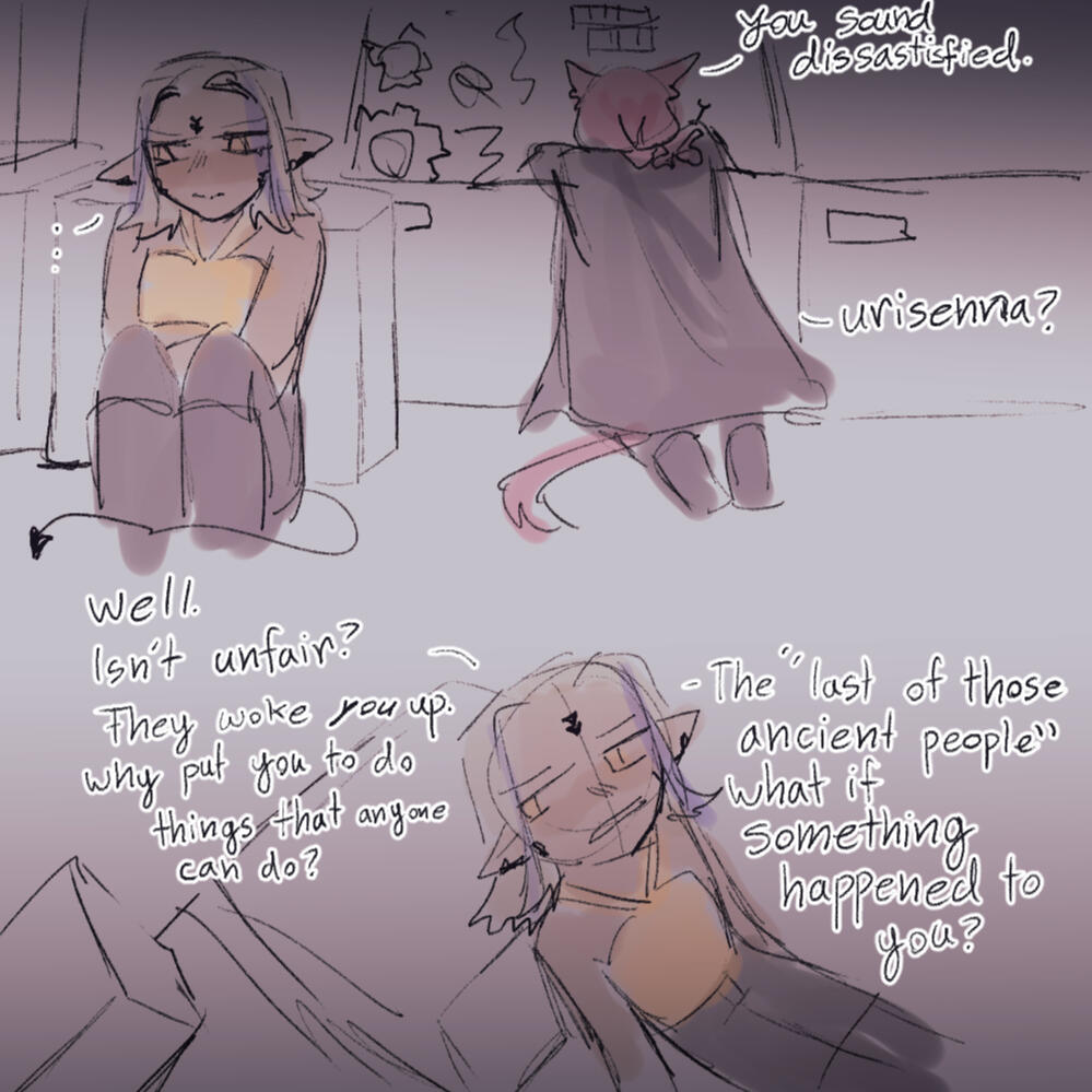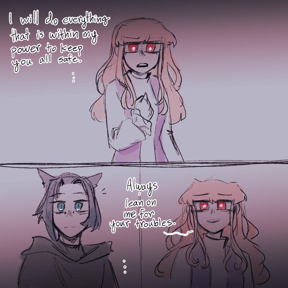 “You always seem to criticize me, rather than help me.” Starting to get back up from the ground readying her next offensive.“I'm trying to help you, Xiela.” Rella's voice still neutral, her demeanor unphased by her aggressive companion.“What about…” swinging another kick and missing, “...in actual battle?! You don't help fight, and now…" Her voice became even more heated, “...you're barely even there!!”“Xiela, you asked me not to assist. I'm tired of watching from the sidelines, and I would rather be somewhere where I can be of use.”“And what? You're just going to listen to whatever I say?""I made a promise to you." Rella said with a slight sadness."You speak of a promise I don't even remember! And for what..?! You leave my fights to be with him? To be with Urianger?! Is he really just your friend? What is he to you, that I'm not?!”“Xiela.” Rella's calm demeanor, turning into irritation. Making it clear in her tone and a sign to Xiela to let it go."You would follow in his lies if Urianger asked you to, wouldn't you?” Xiela yelled.Not a moment passed, Rella said with no hesitation, “I would.““I hate you!! I hate him! I hate everyone in this stupid place!!” Continuing to throw her tantrum like a child who didn't get their way. He was getting all of Rella's attention that Xiela wanted for herself. Rella was reaching her limit with her.Staring daggers, walking closer to Rella, her hand pointing at her accusingly, Xiela threw Rella's warning to the side.“You think you're so much better than me! When actually, you're hiding what you really are! Does he know?!” Xiela kept poking at Rella's emotional wounds to get a reaction.