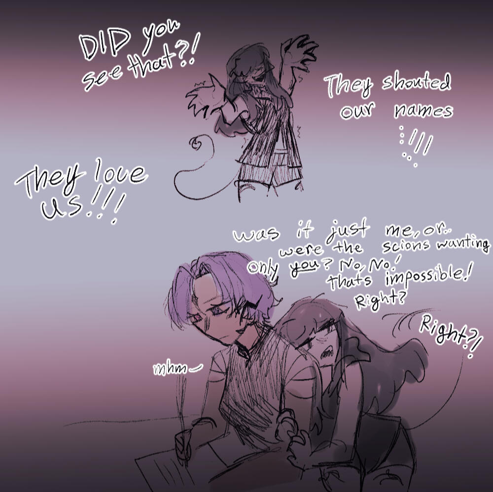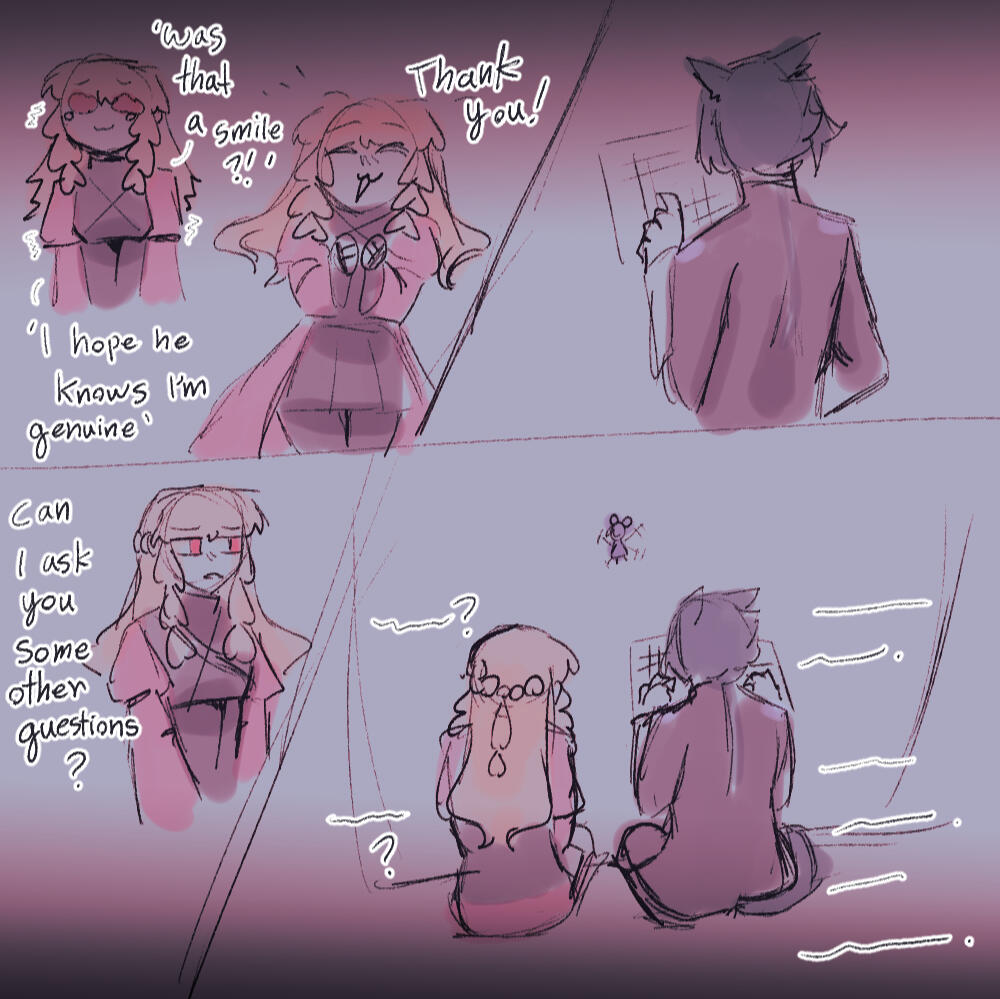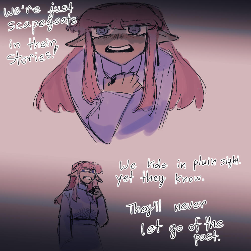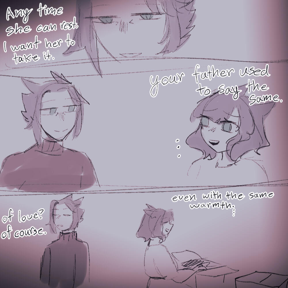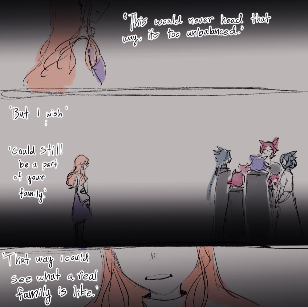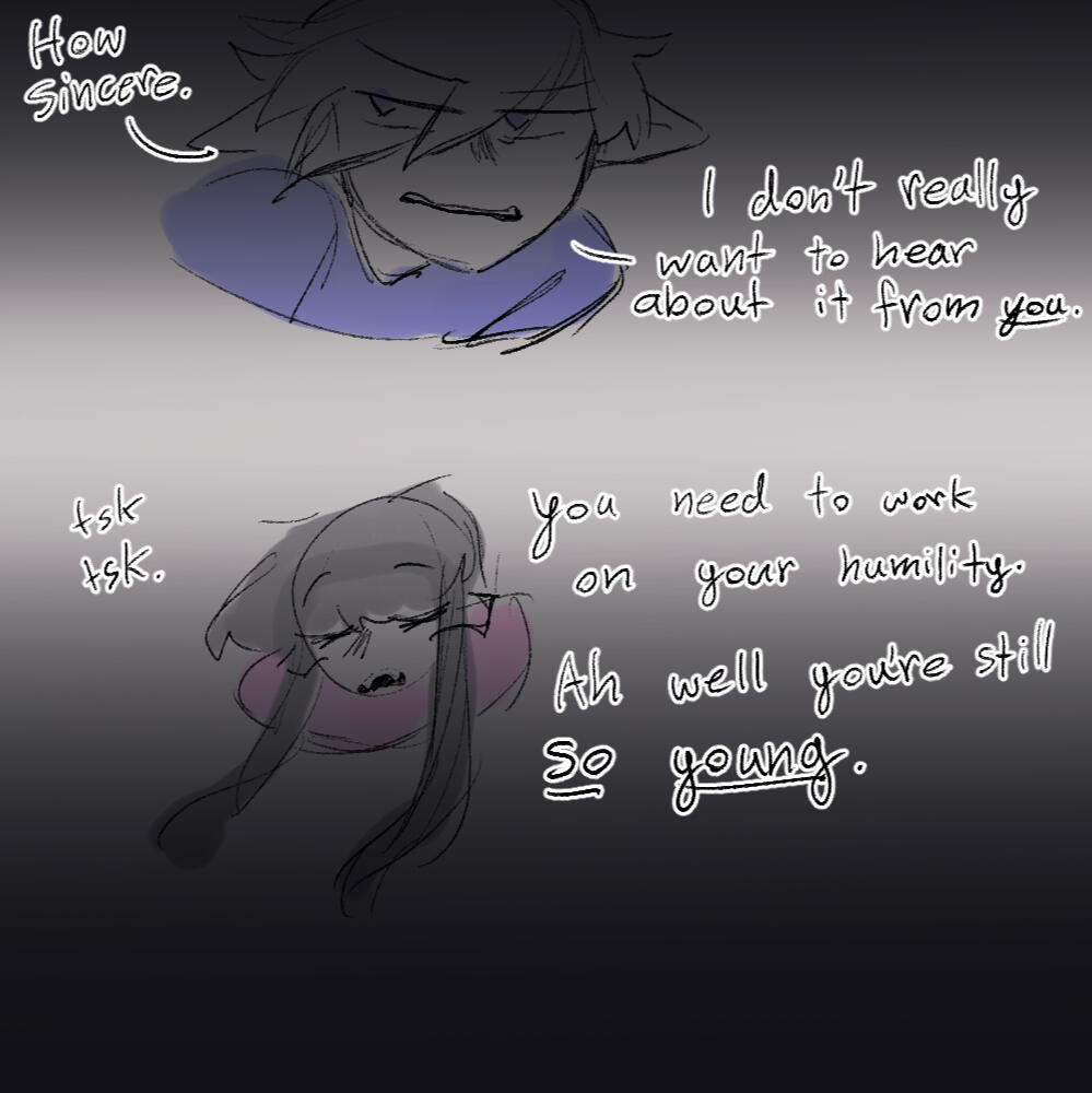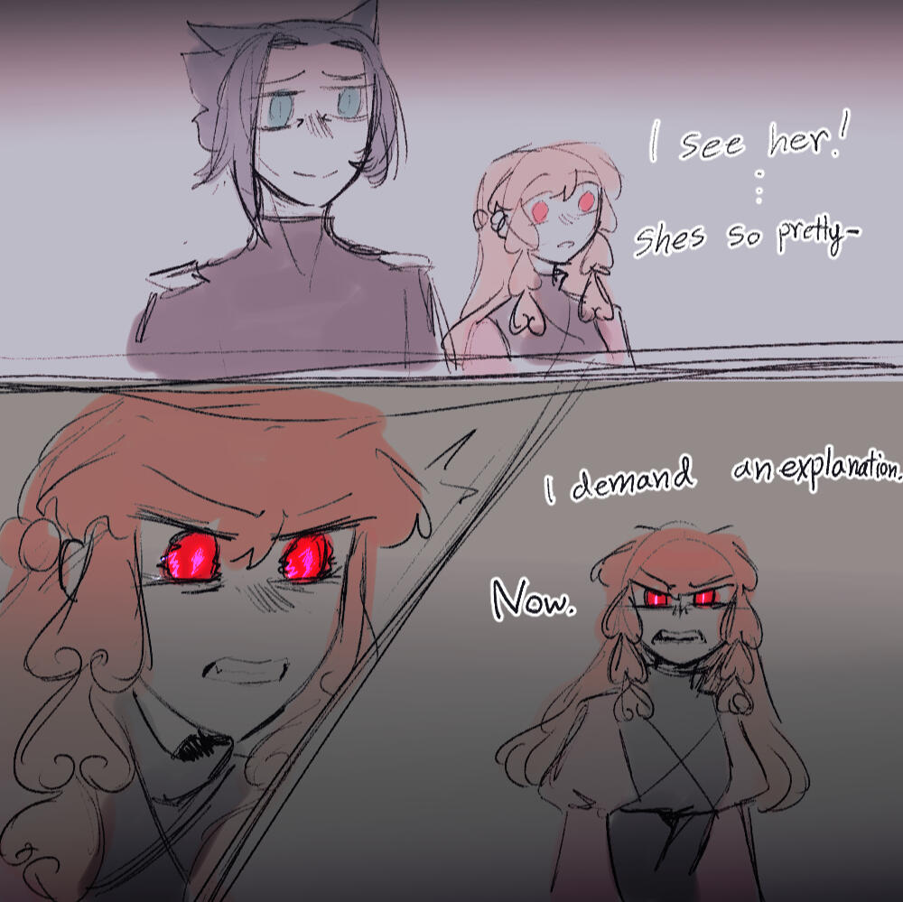 “You always seem to criticize me, rather than help me.” Starting to get back up from the ground readying her next offensive.“I'm trying to help you, Xiela.” Rella's voice still neutral, her demeanor unphased by her aggressive companion.“What about…” swinging another kick and missing, “...in actual battle?! You don't help fight, and now…" Her voice became even more heated, “...you're barely even there!!”“Xiela, you asked me not to assist. I'm tired of watching from the sidelines, and I would rather be somewhere where I can be of use.”“And what? You're just going to listen to whatever I say?""I made a promise to you." Rella said with a slight sadness."You speak of a promise I don't even remember! And for what..?! You leave my fights to be with him? To be with Urianger?! Is he really just your friend? What is he to you, that I'm not?!”“Xiela.” Rella's calm demeanor, turning into irritation. Making it clear in her tone and a sign to Xiela to let it go."You would follow in his lies if Urianger asked you to, wouldn't you?” Xiela yelled.Not a moment passed, Rella said with no hesitation, “I would.““I hate you!! I hate him! I hate everyone in this stupid place!!” Continuing to throw her tantrum like a child who didn't get their way. He was getting all of Rella's attention that Xiela wanted for herself. Rella was reaching her limit with her.Staring daggers, walking closer to Rella, her hand pointing at her accusingly, Xiela threw Rella's warning to the side.“You think you're so much better than me! When actually, you're hiding what you really are! Does he know?!” Xiela kept poking at Rella's emotional wounds to get a reaction.
