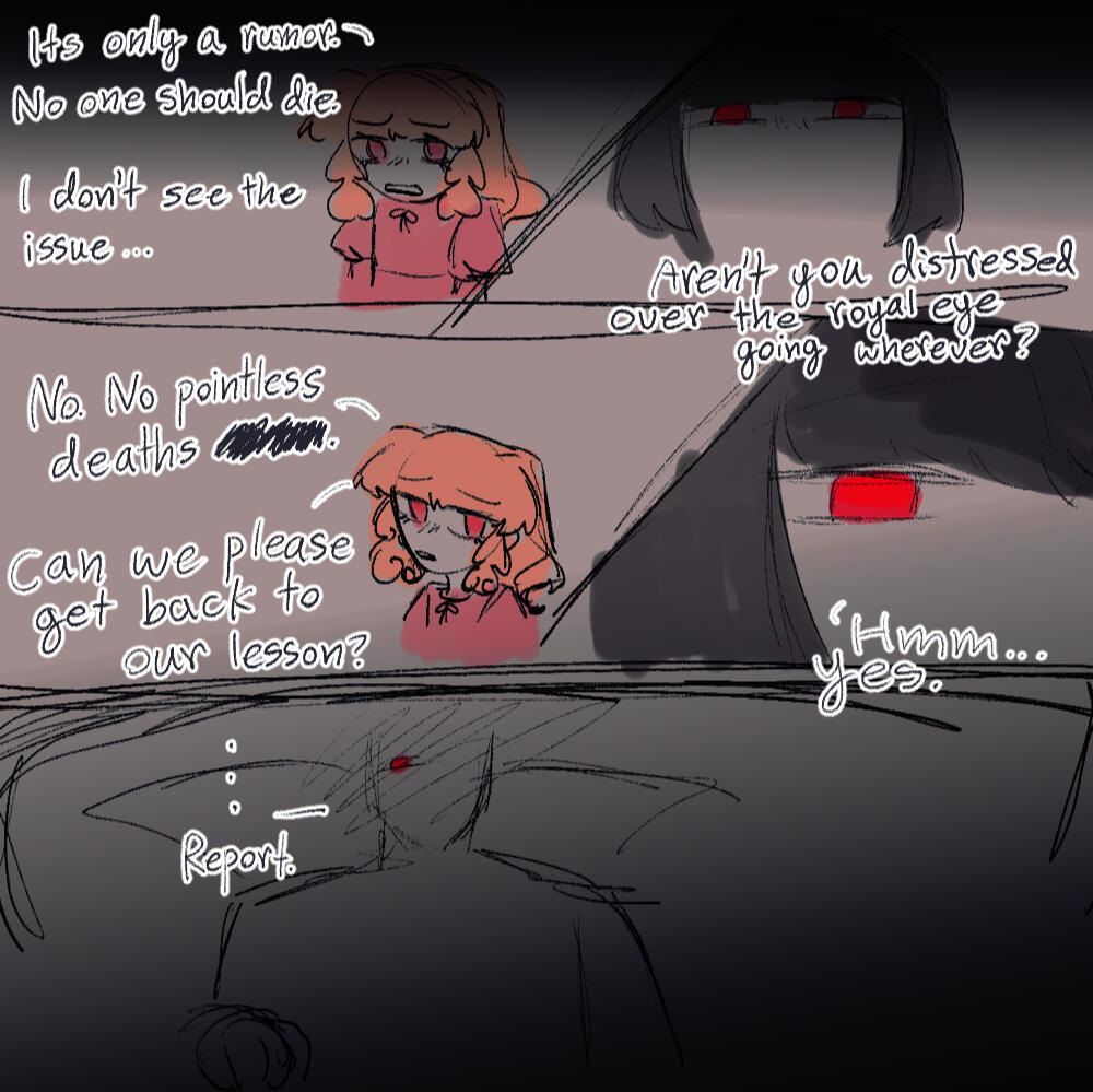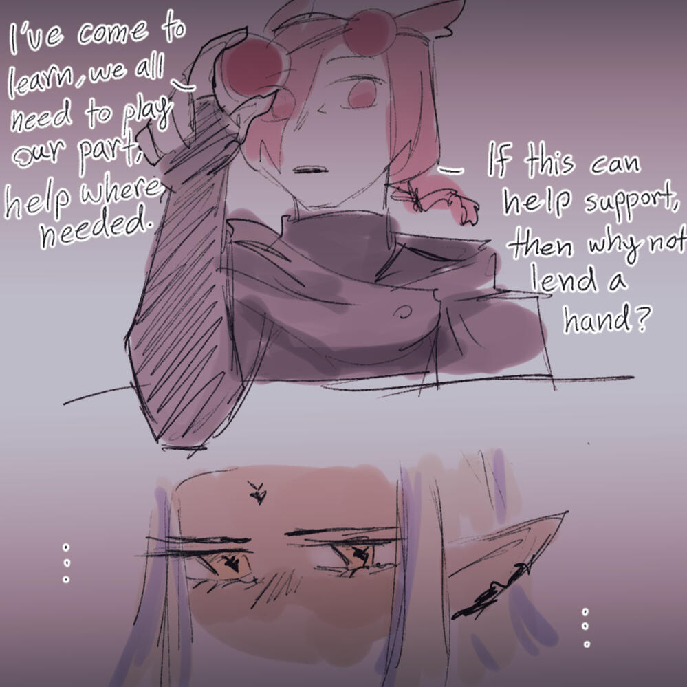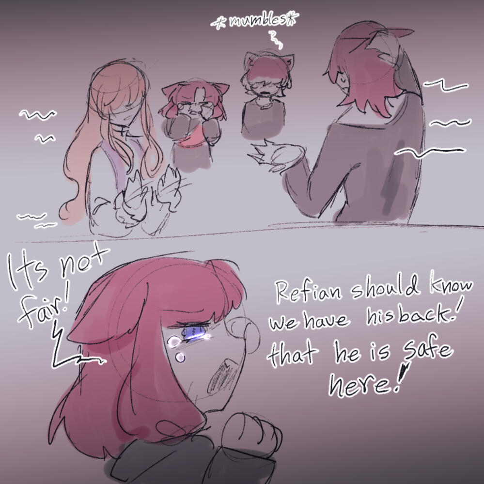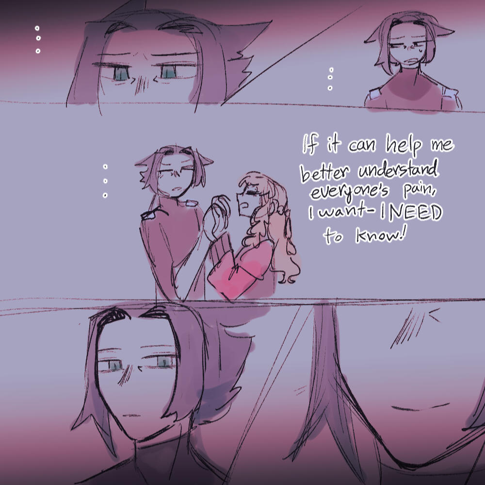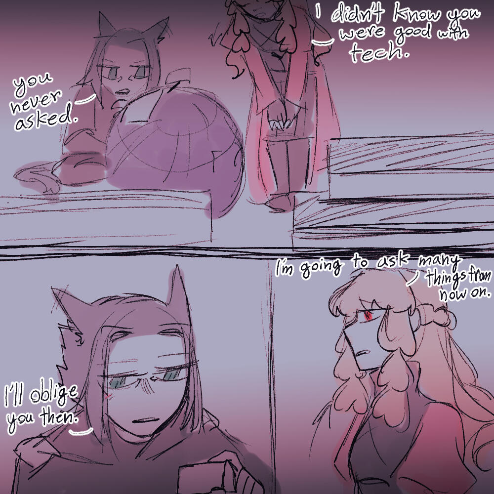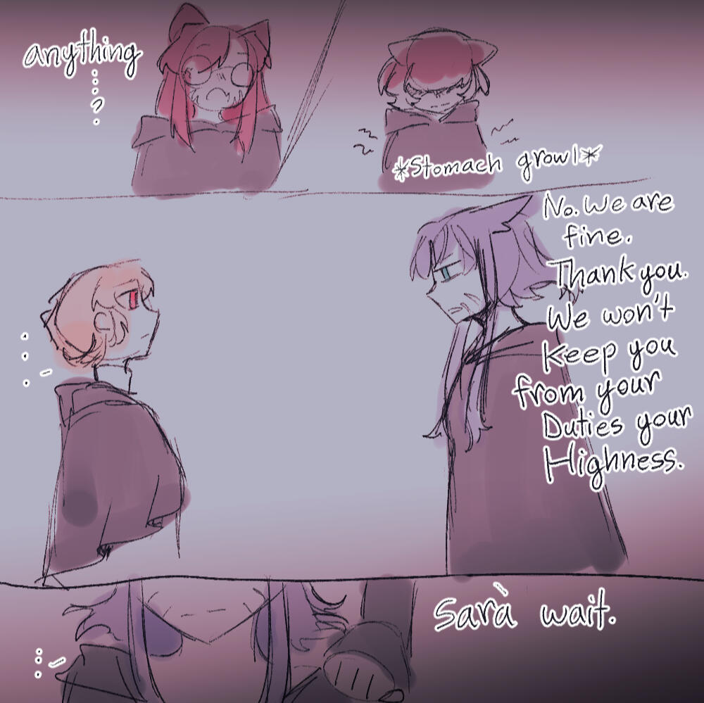 “You always seem to criticize me, rather than help me.” Starting to get back up from the ground readying her next offensive.“I'm trying to help you, Xiela.” Rella's voice still neutral, her demeanor unphased by her aggressive companion.“What about…” swinging another kick and missing, “...in actual battle?! You don't help fight, and now…" Her voice became even more heated, “...you're barely even there!!”“Xiela, you asked me not to assist. I'm tired of watching from the sidelines, and I would rather be somewhere where I can be of use.”“And what? You're just going to listen to whatever I say?""I made a promise to you." Rella said with a slight sadness."You speak of a promise I don't even remember! And for what..?! You leave my fights to be with him? To be with Urianger?! Is he really just your friend? What is he to you, that I'm not?!”“Xiela.” Rella's calm demeanor, turning into irritation. Making it clear in her tone and a sign to Xiela to let it go."You would follow in his lies if Urianger asked you to, wouldn't you?” Xiela yelled.Not a moment passed, Rella said with no hesitation, “I would.““I hate you!! I hate him! I hate everyone in this stupid place!!” Continuing to throw her tantrum like a child who didn't get their way. He was getting all of Rella's attention that Xiela wanted for herself. Rella was reaching her limit with her.Staring daggers, walking closer to Rella, her hand pointing at her accusingly, Xiela threw Rella's warning to the side.“You think you're so much better than me! When actually, you're hiding what you really are! Does he know?!” Xiela kept poking at Rella's emotional wounds to get a reaction.