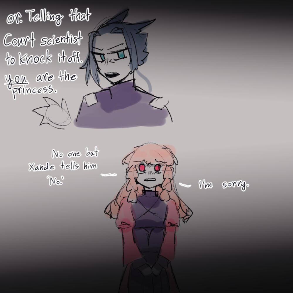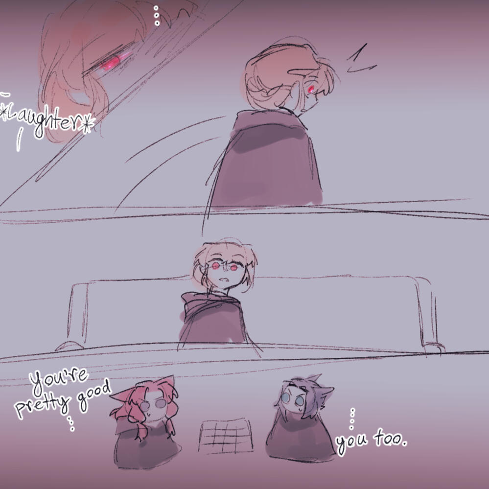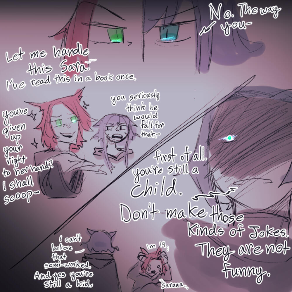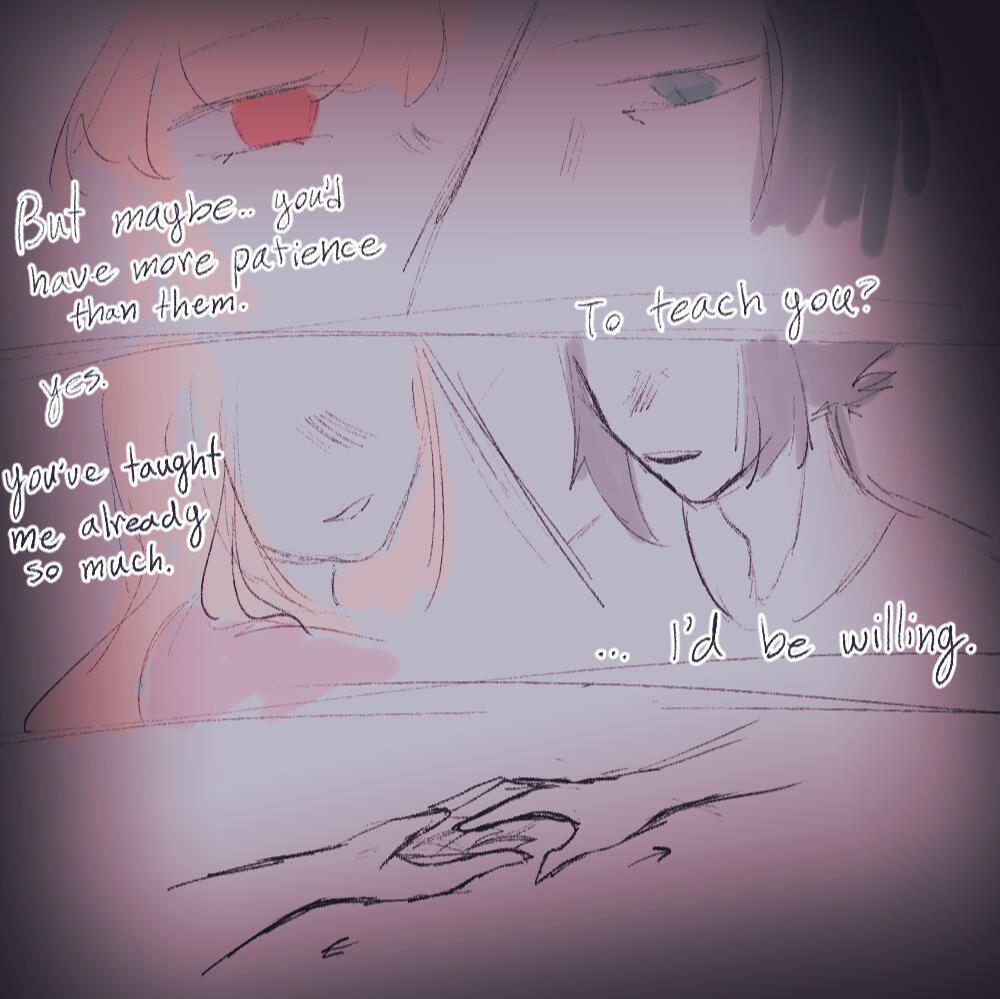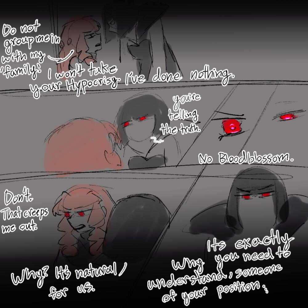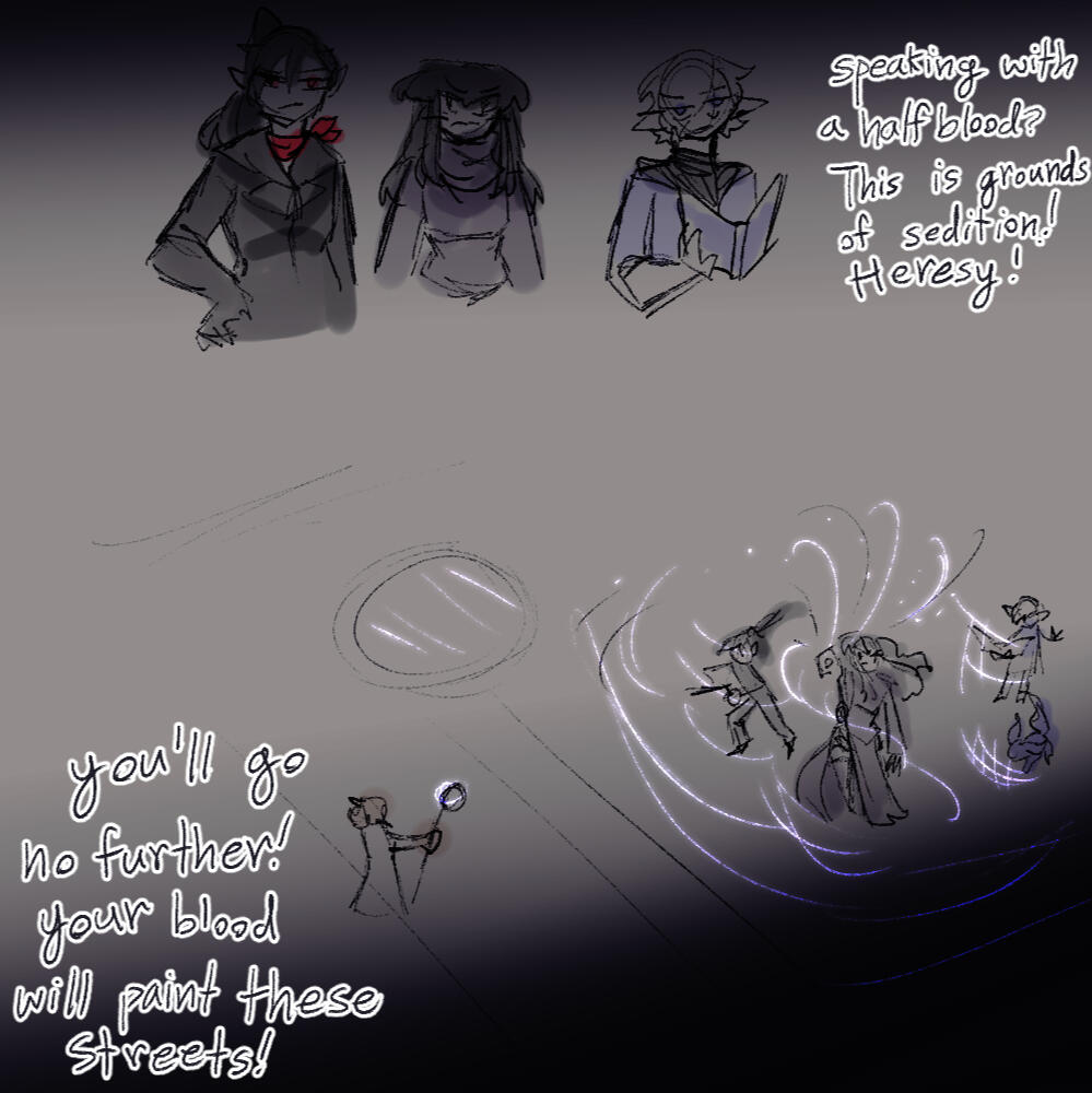 “You always seem to criticize me, rather than help me.” Starting to get back up from the ground readying her next offensive.“I'm trying to help you, Xiela.” Rella's voice still neutral, her demeanor unphased by her aggressive companion.“What about…” swinging another kick and missing, “...in actual battle?! You don't help fight, and now…" Her voice became even more heated, “...you're barely even there!!”“Xiela, you asked me not to assist. I'm tired of watching from the sidelines, and I would rather be somewhere where I can be of use.”“And what? You're just going to listen to whatever I say?""I made a promise to you." Rella said with a slight sadness."You speak of a promise I don't even remember! And for what..?! You leave my fights to be with him? To be with Urianger?! Is he really just your friend? What is he to you, that I'm not?!”“Xiela.” Rella's calm demeanor, turning into irritation. Making it clear in her tone and a sign to Xiela to let it go."You would follow in his lies if Urianger asked you to, wouldn't you?” Xiela yelled.Not a moment passed, Rella said with no hesitation, “I would.““I hate you!! I hate him! I hate everyone in this stupid place!!” Continuing to throw her tantrum like a child who didn't get their way. He was getting all of Rella's attention that Xiela wanted for herself. Rella was reaching her limit with her.Staring daggers, walking closer to Rella, her hand pointing at her accusingly, Xiela threw Rella's warning to the side.“You think you're so much better than me! When actually, you're hiding what you really are! Does he know?!” Xiela kept poking at Rella's emotional wounds to get a reaction.