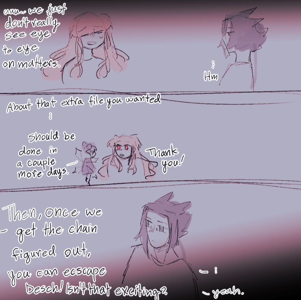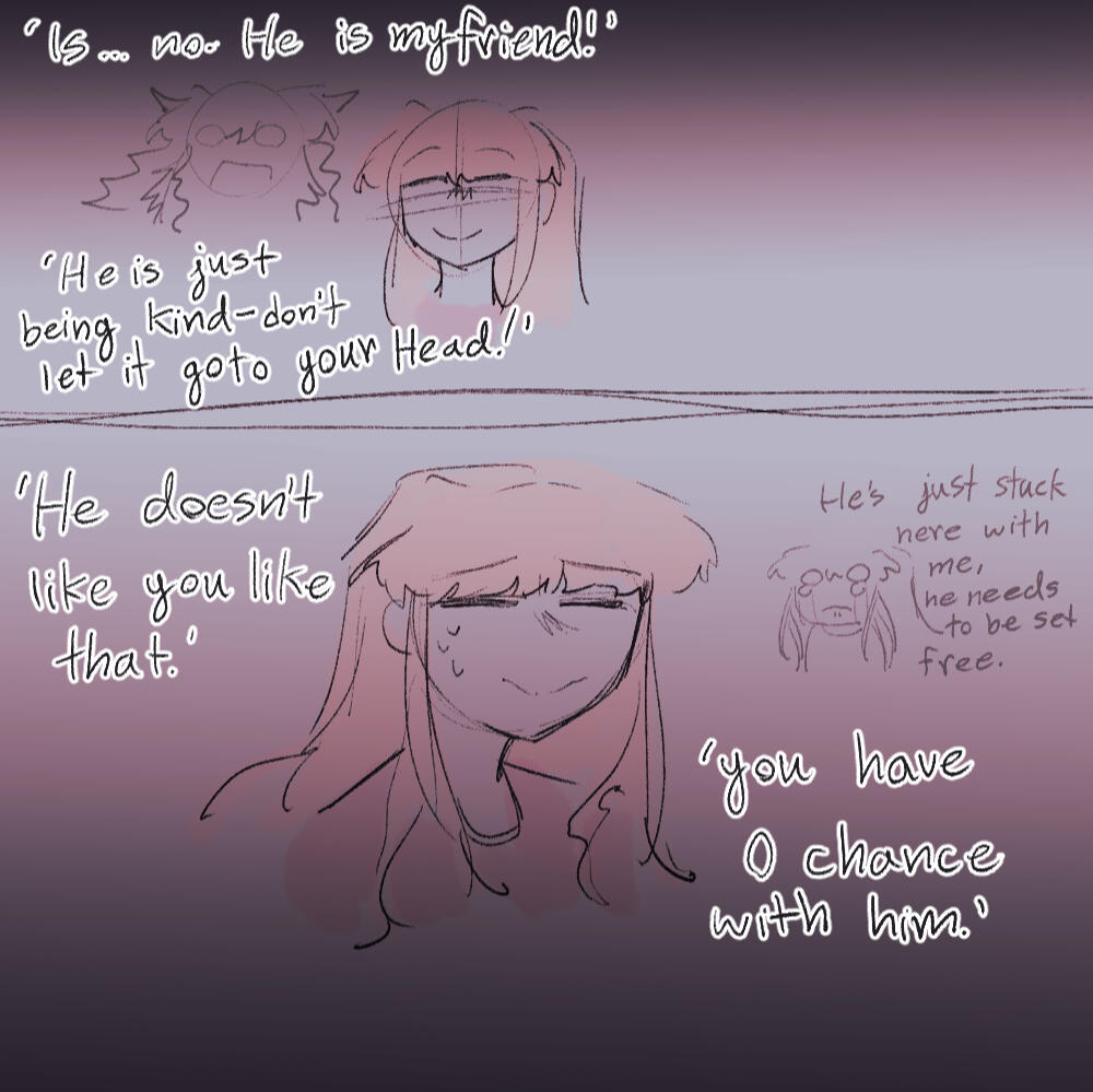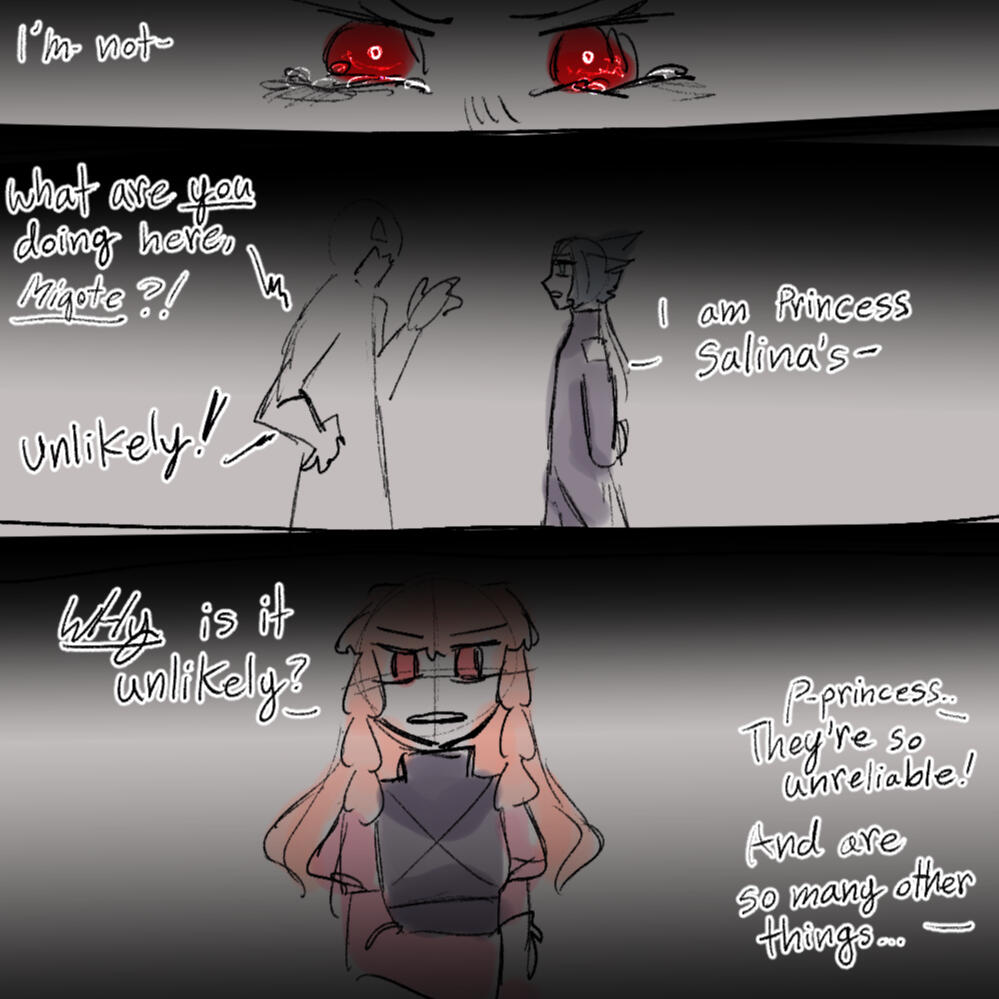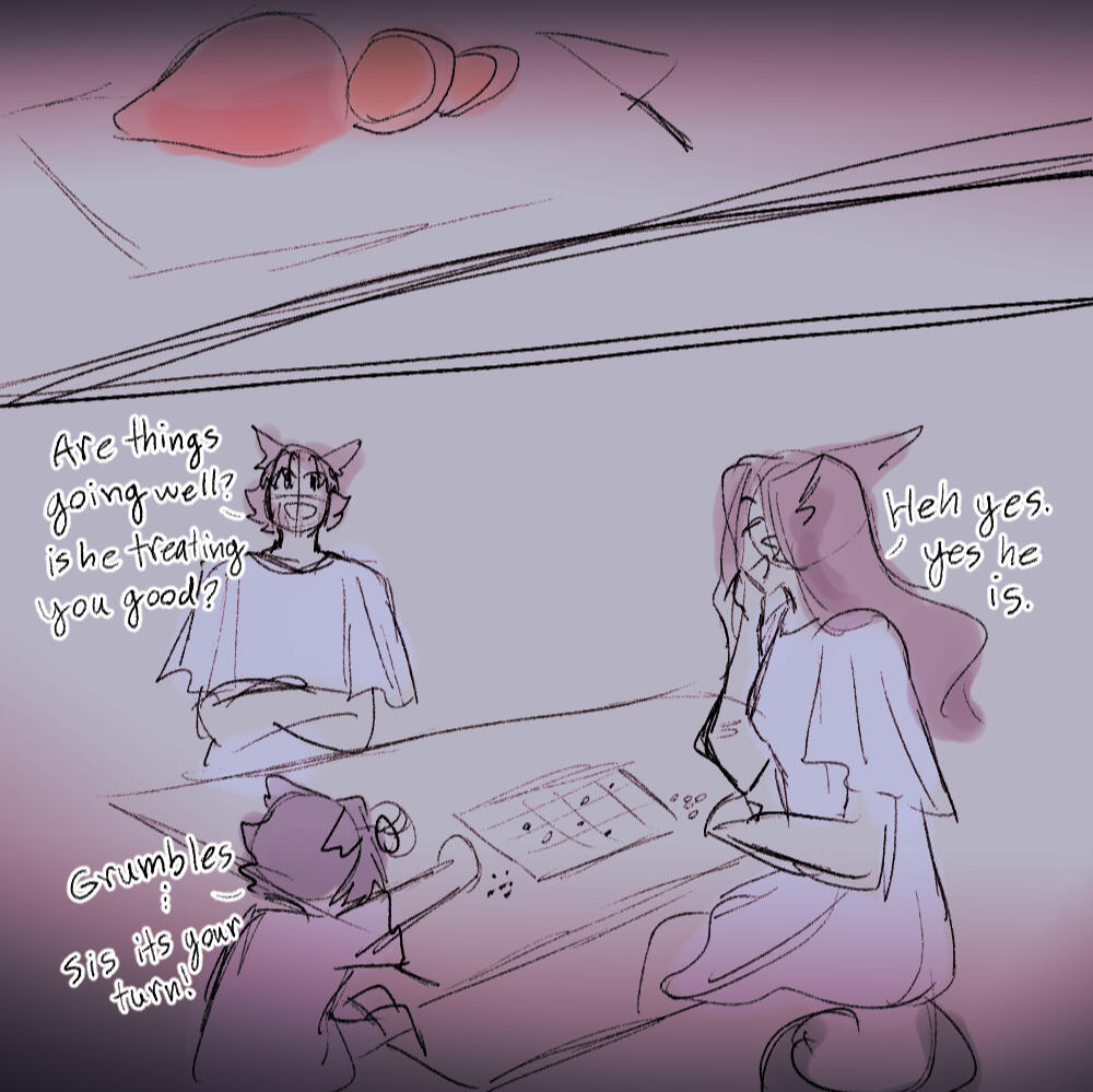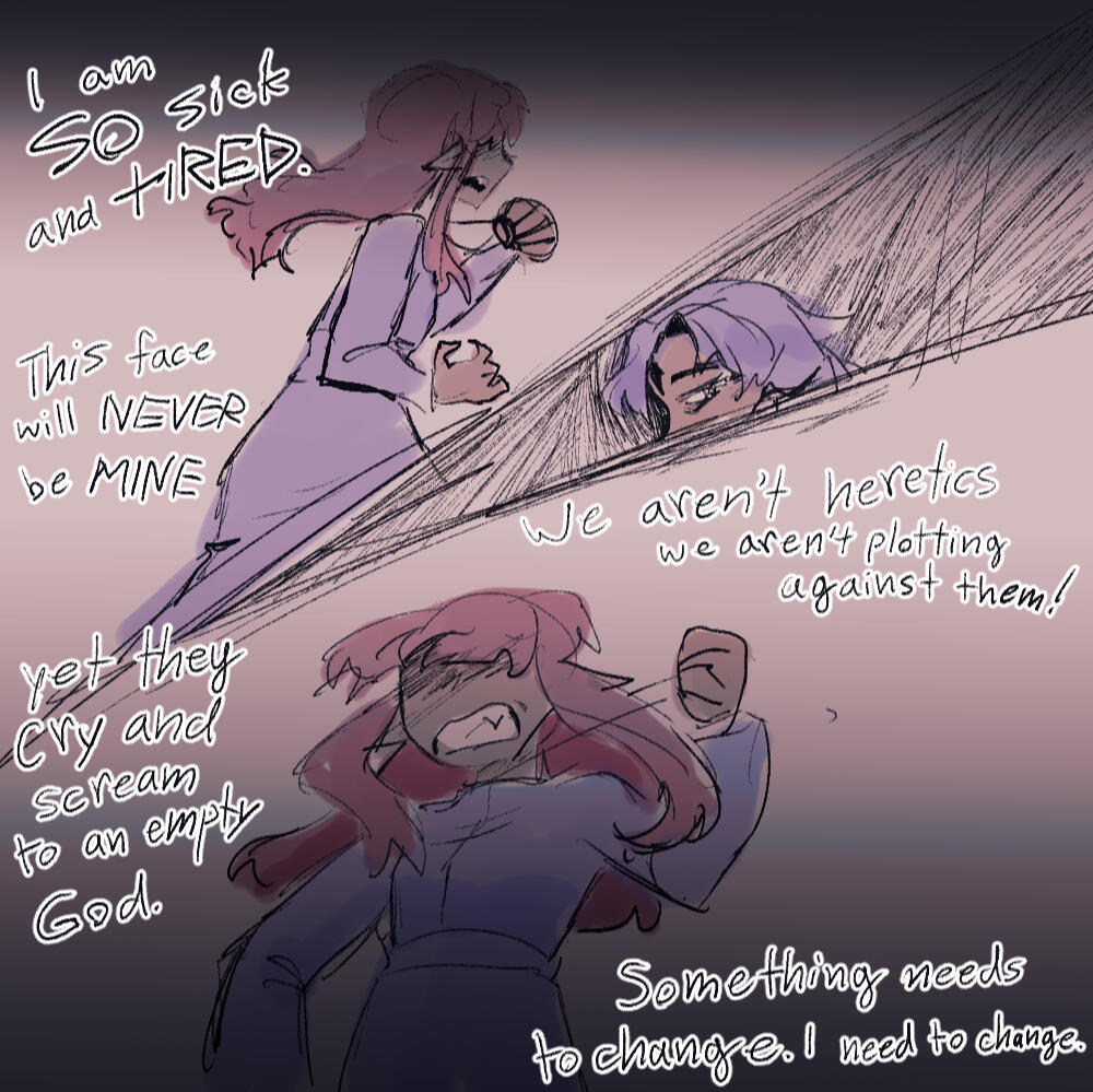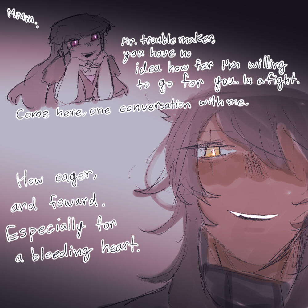 “You always seem to criticize me, rather than help me.” Starting to get back up from the ground readying her next offensive.“I'm trying to help you, Xiela.” Rella's voice still neutral, her demeanor unphased by her aggressive companion.“What about…” swinging another kick and missing, “...in actual battle?! You don't help fight, and now…" Her voice became even more heated, “...you're barely even there!!”“Xiela, you asked me not to assist. I'm tired of watching from the sidelines, and I would rather be somewhere where I can be of use.”“And what? You're just going to listen to whatever I say?""I made a promise to you." Rella said with a slight sadness."You speak of a promise I don't even remember! And for what..?! You leave my fights to be with him? To be with Urianger?! Is he really just your friend? What is he to you, that I'm not?!”“Xiela.” Rella's calm demeanor, turning into irritation. Making it clear in her tone and a sign to Xiela to let it go."You would follow in his lies if Urianger asked you to, wouldn't you?” Xiela yelled.Not a moment passed, Rella said with no hesitation, “I would.““I hate you!! I hate him! I hate everyone in this stupid place!!” Continuing to throw her tantrum like a child who didn't get their way. He was getting all of Rella's attention that Xiela wanted for herself. Rella was reaching her limit with her.Staring daggers, walking closer to Rella, her hand pointing at her accusingly, Xiela threw Rella's warning to the side.“You think you're so much better than me! When actually, you're hiding what you really are! Does he know?!” Xiela kept poking at Rella's emotional wounds to get a reaction.