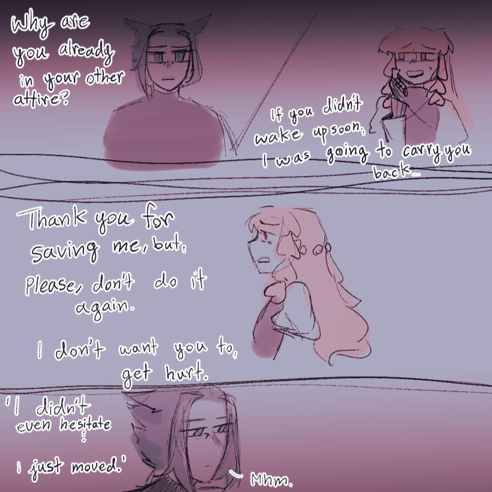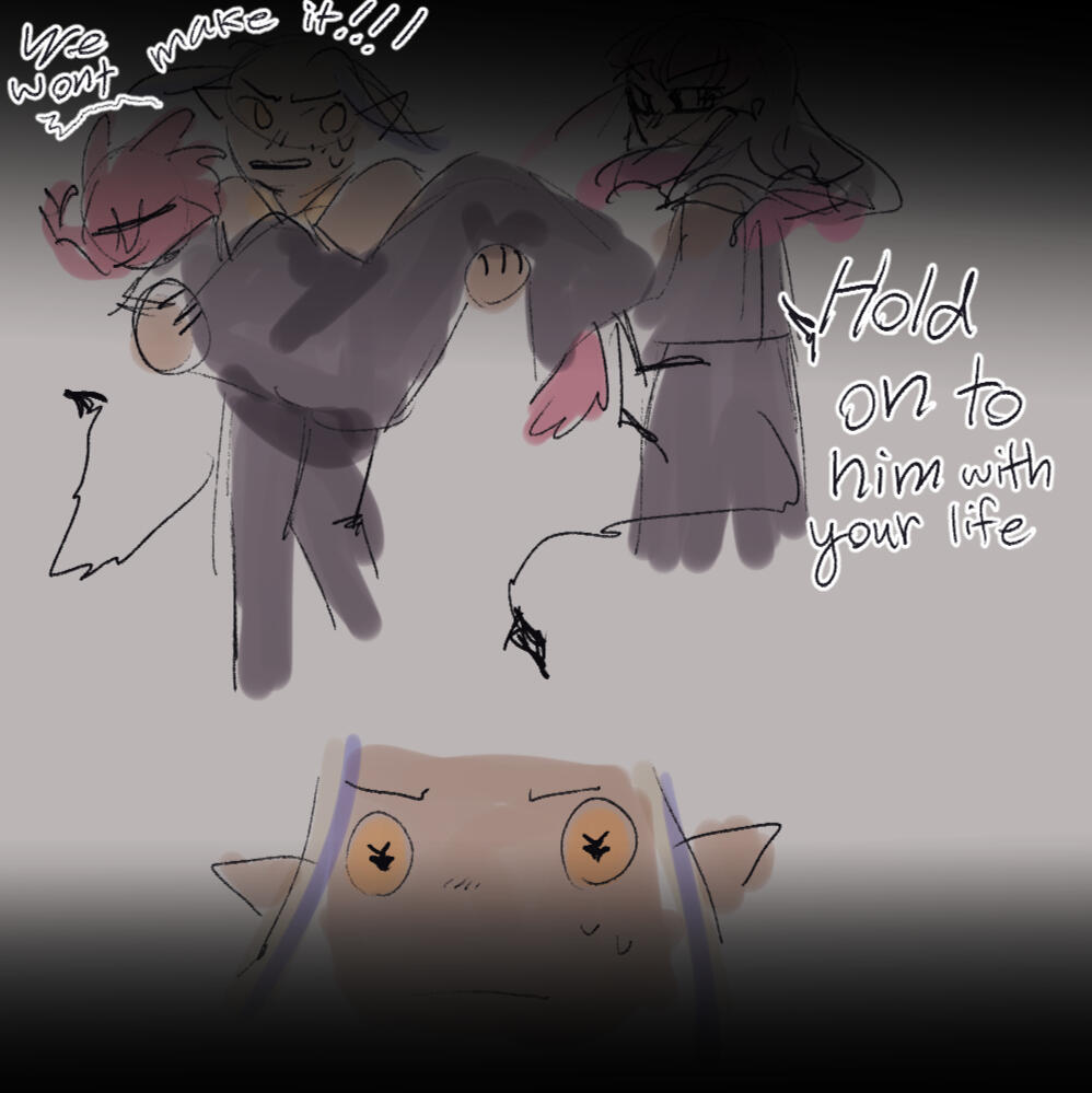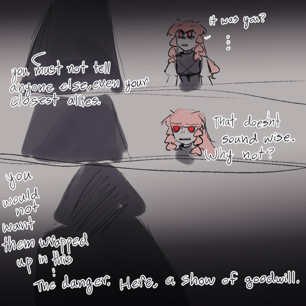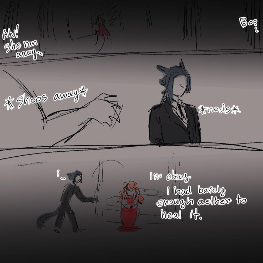 “—Don’t.”This time, Xiela listened.Xiela could no longer fight back the impending darkness. After repeated attempts to stand she finally fainted and collapsed to the ground, leaving the observing figure no choice but to lend their aid.
