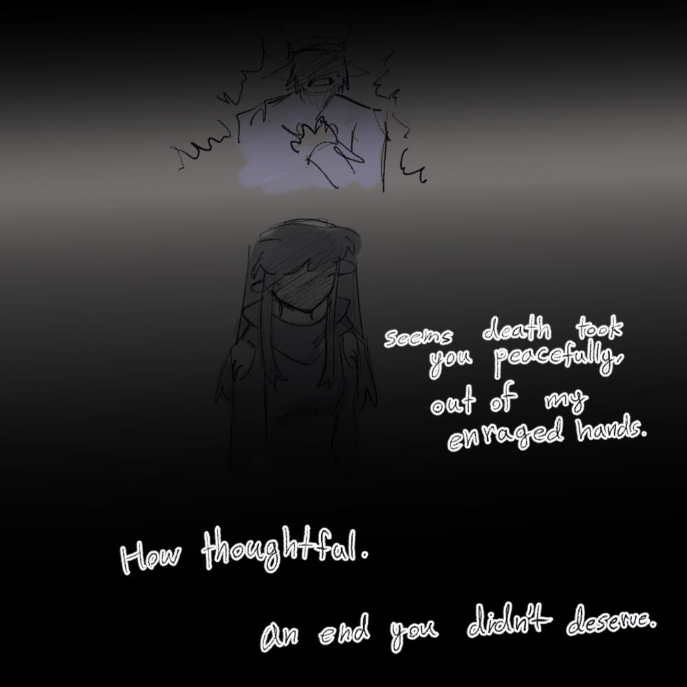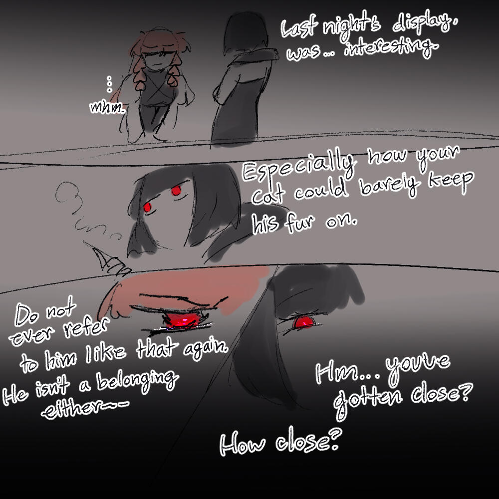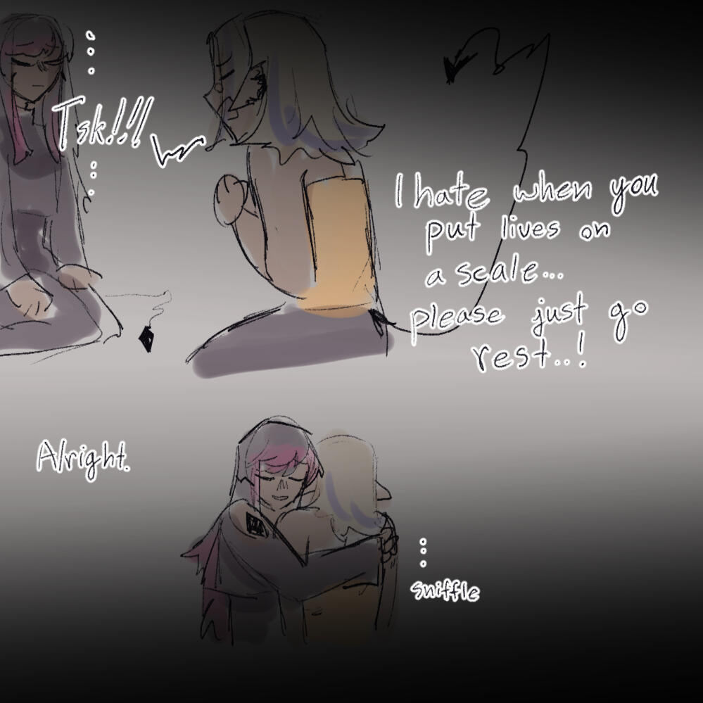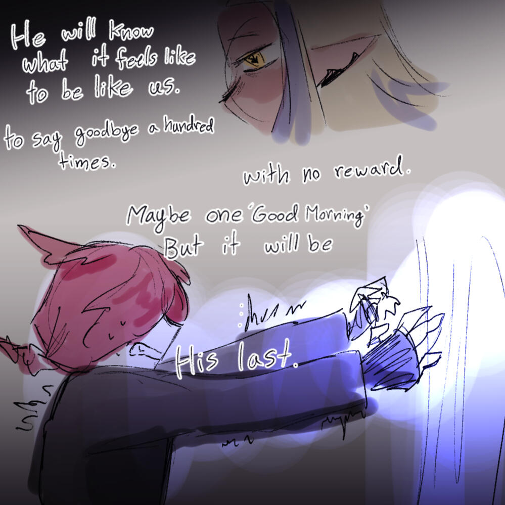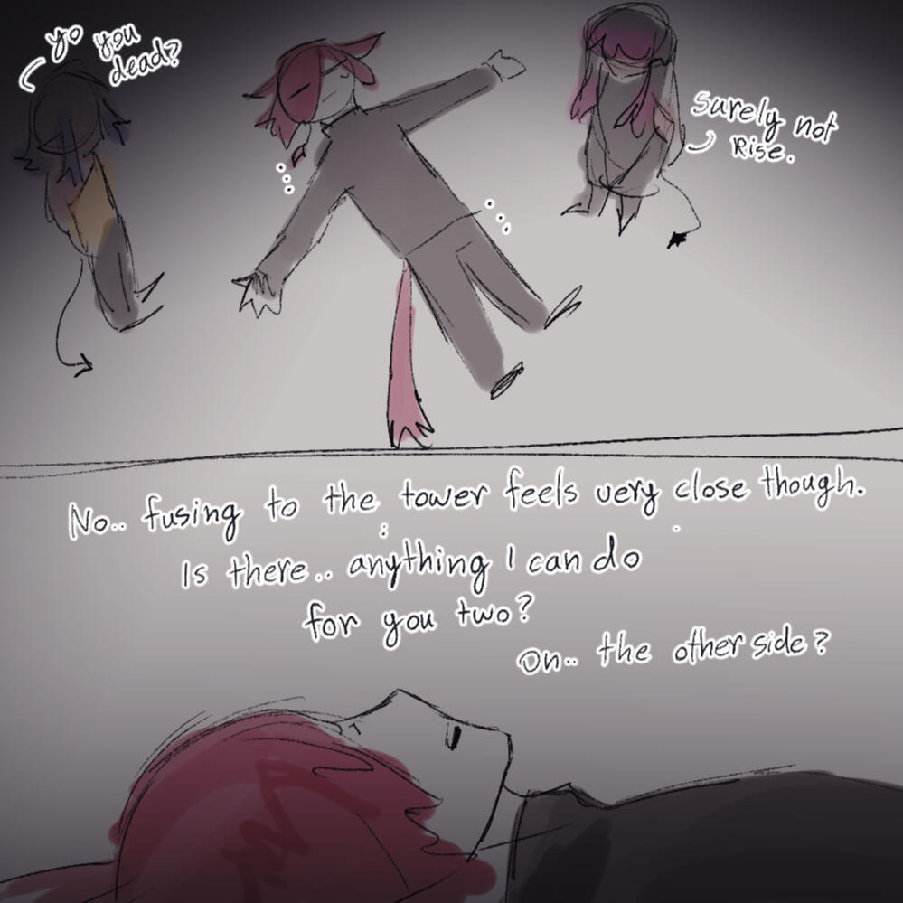 “—Don’t.”This time, Xiela listened.Xiela could no longer fight back the impending darkness. After repeated attempts to stand she finally fainted and collapsed to the ground, leaving the observing figure no choice but to lend their aid.