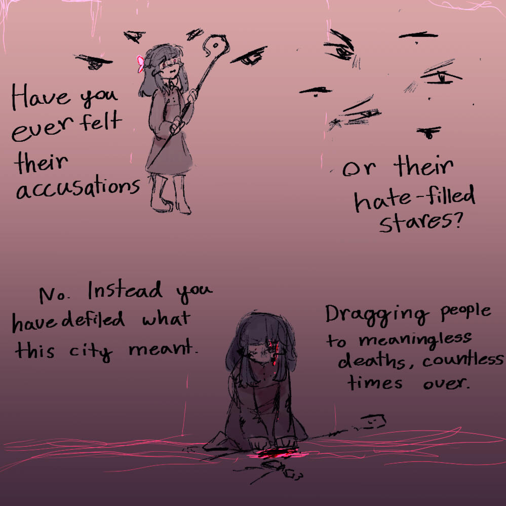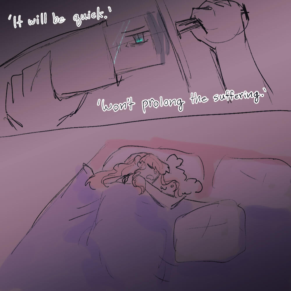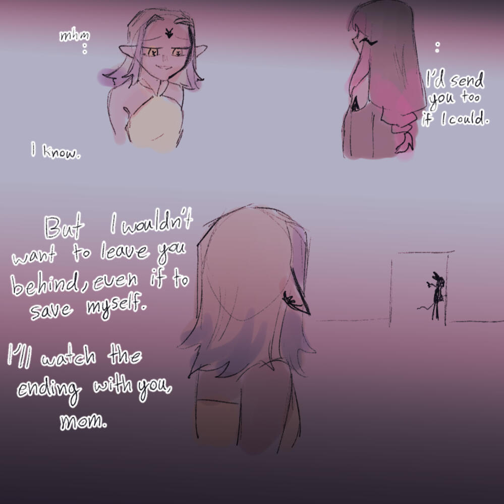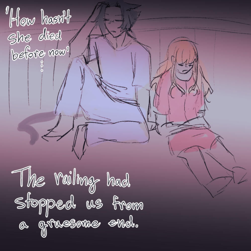 “—Don’t.”This time, Xiela listened.Xiela could no longer fight back the impending darkness. After repeated attempts to stand she finally fainted and collapsed to the ground, leaving the observing figure no choice but to lend their aid.