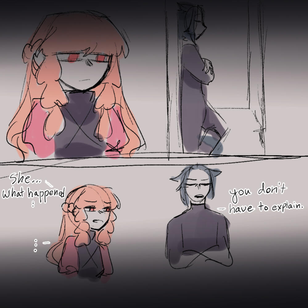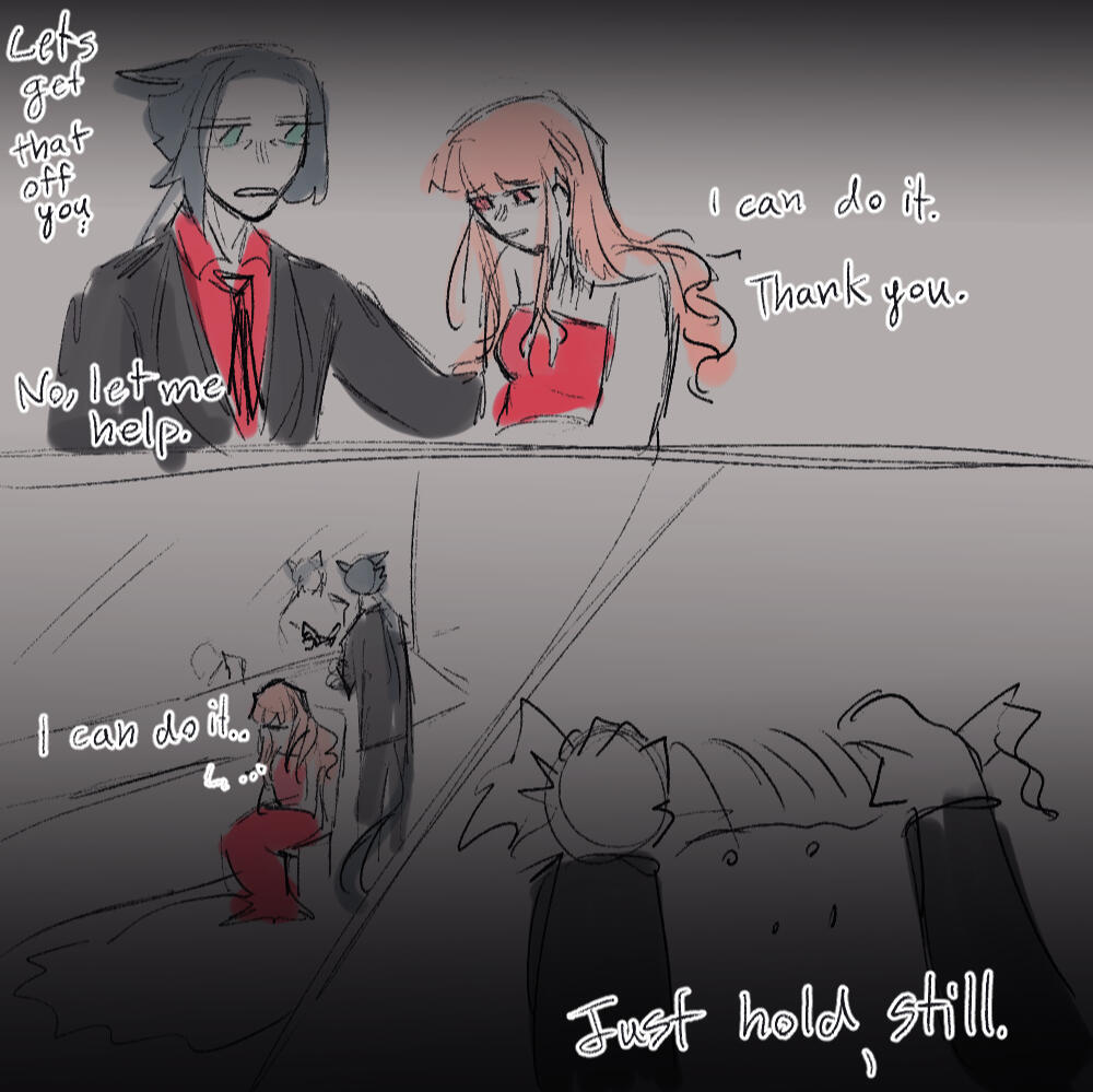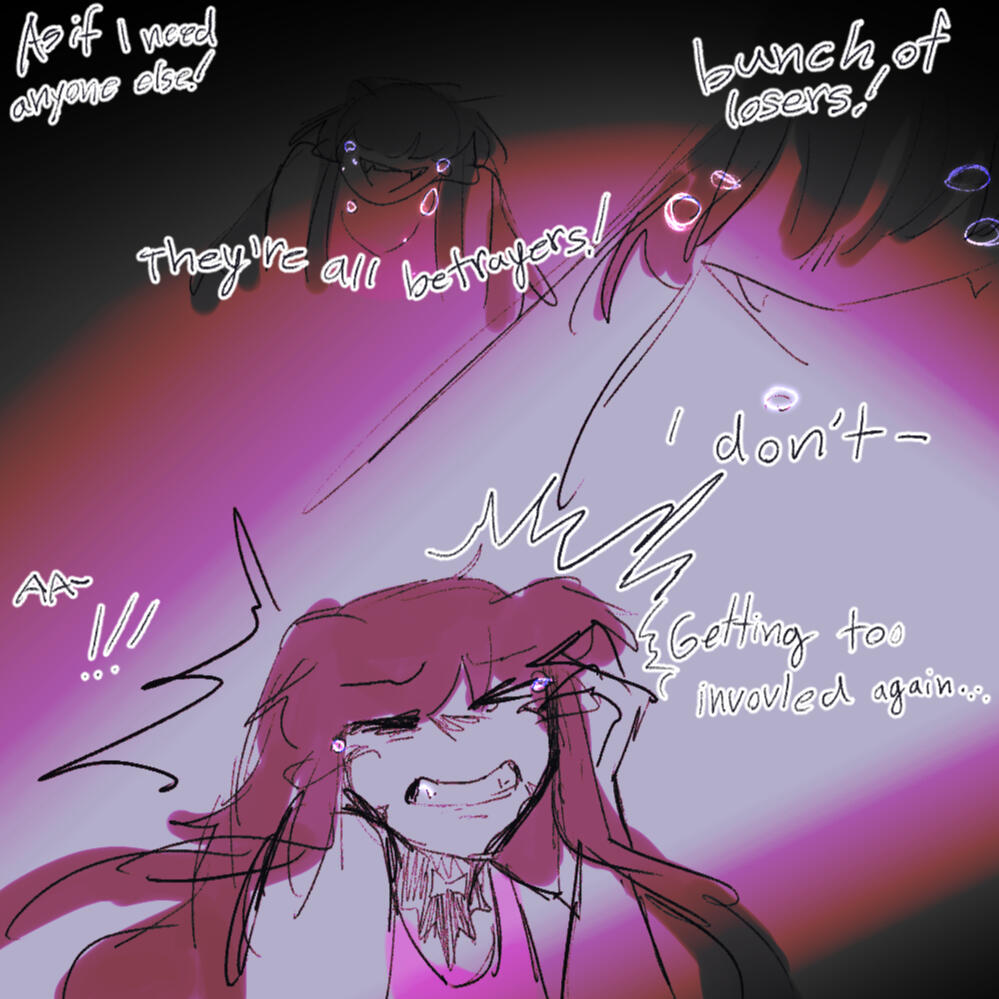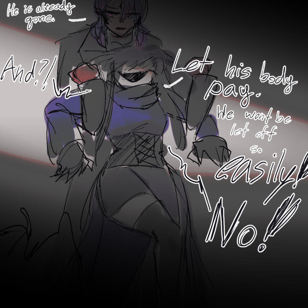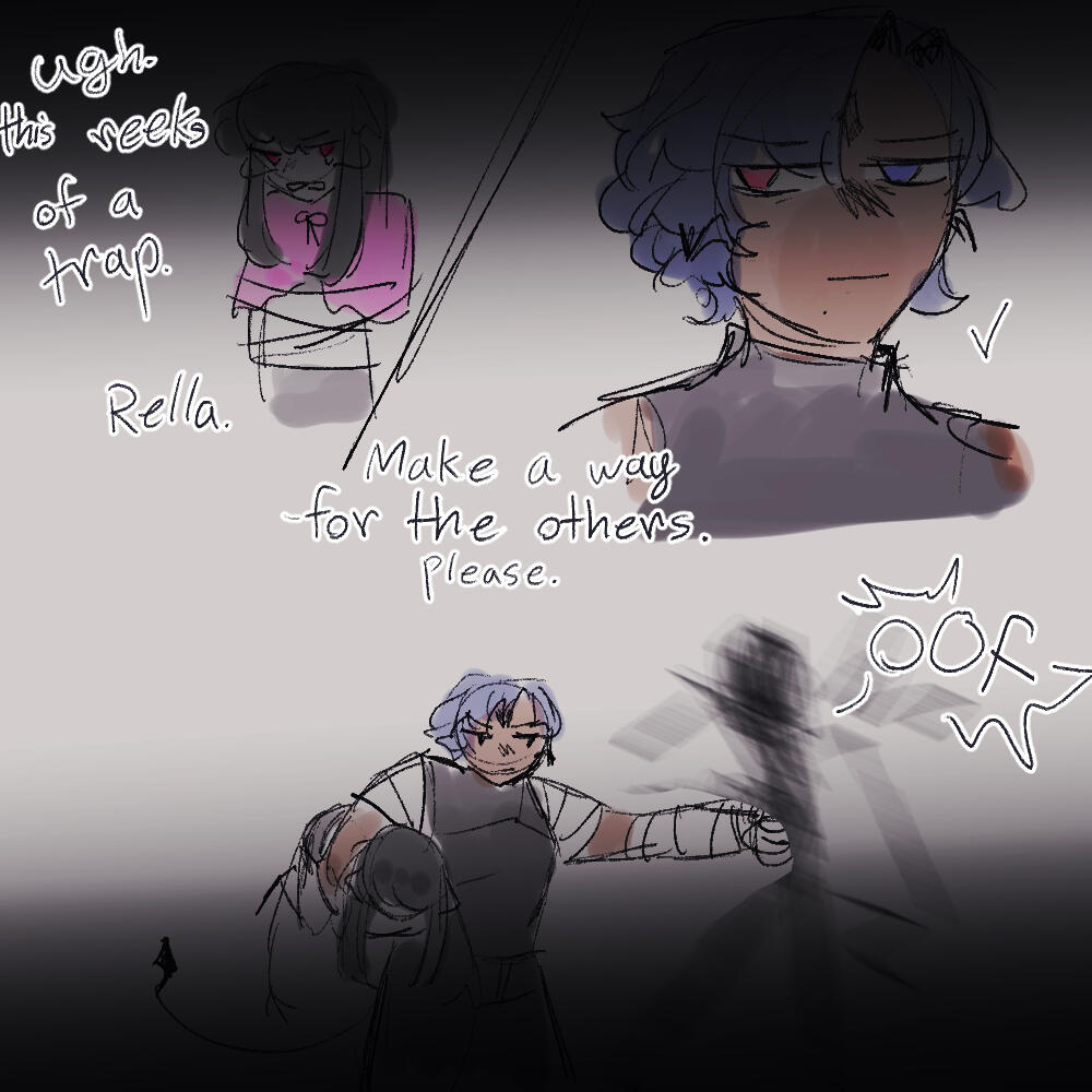 Regret washed over her. Her words were so cruel, and she spoke them to someone she considered her best friend, someone she claimed to care for. Reaching a shaky hand out of the rubble, Xiela looked to Rella.Her voice was weak and breathless, “N-no.. wait.. I'm sorry, I didn’t—”
