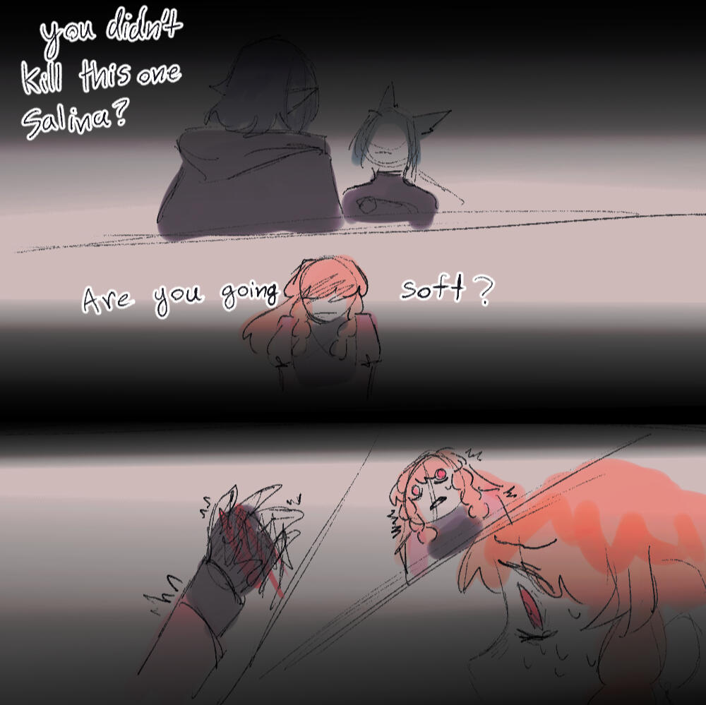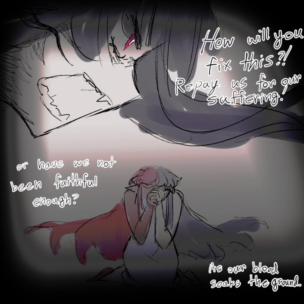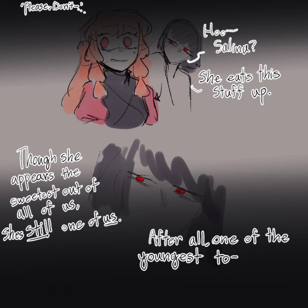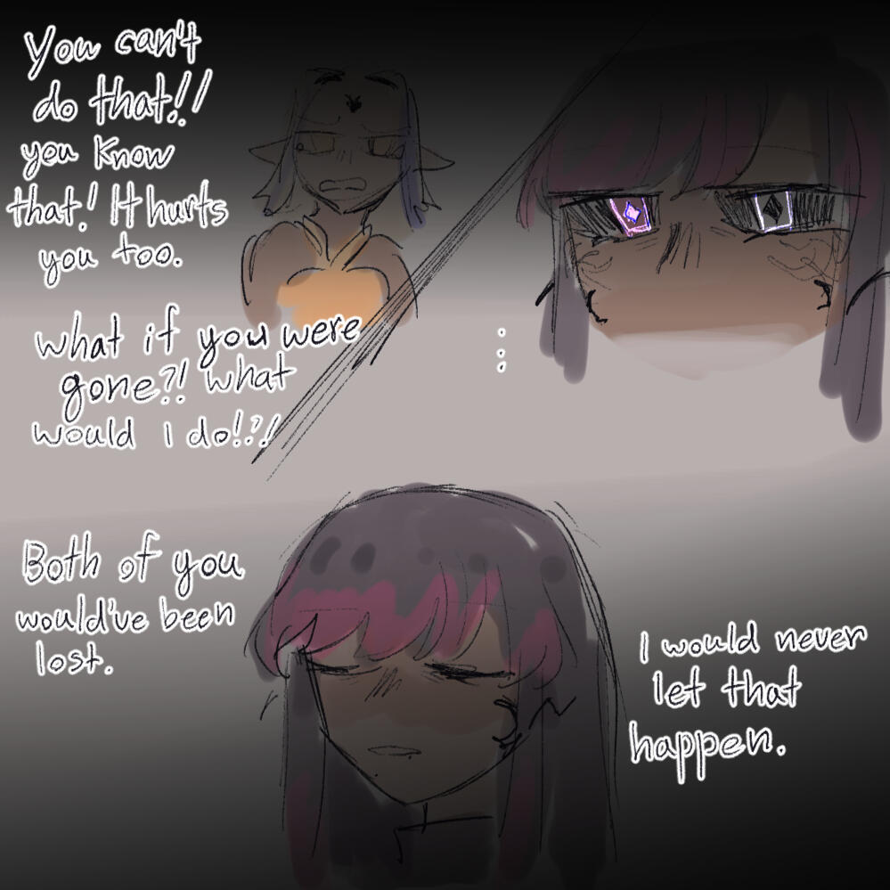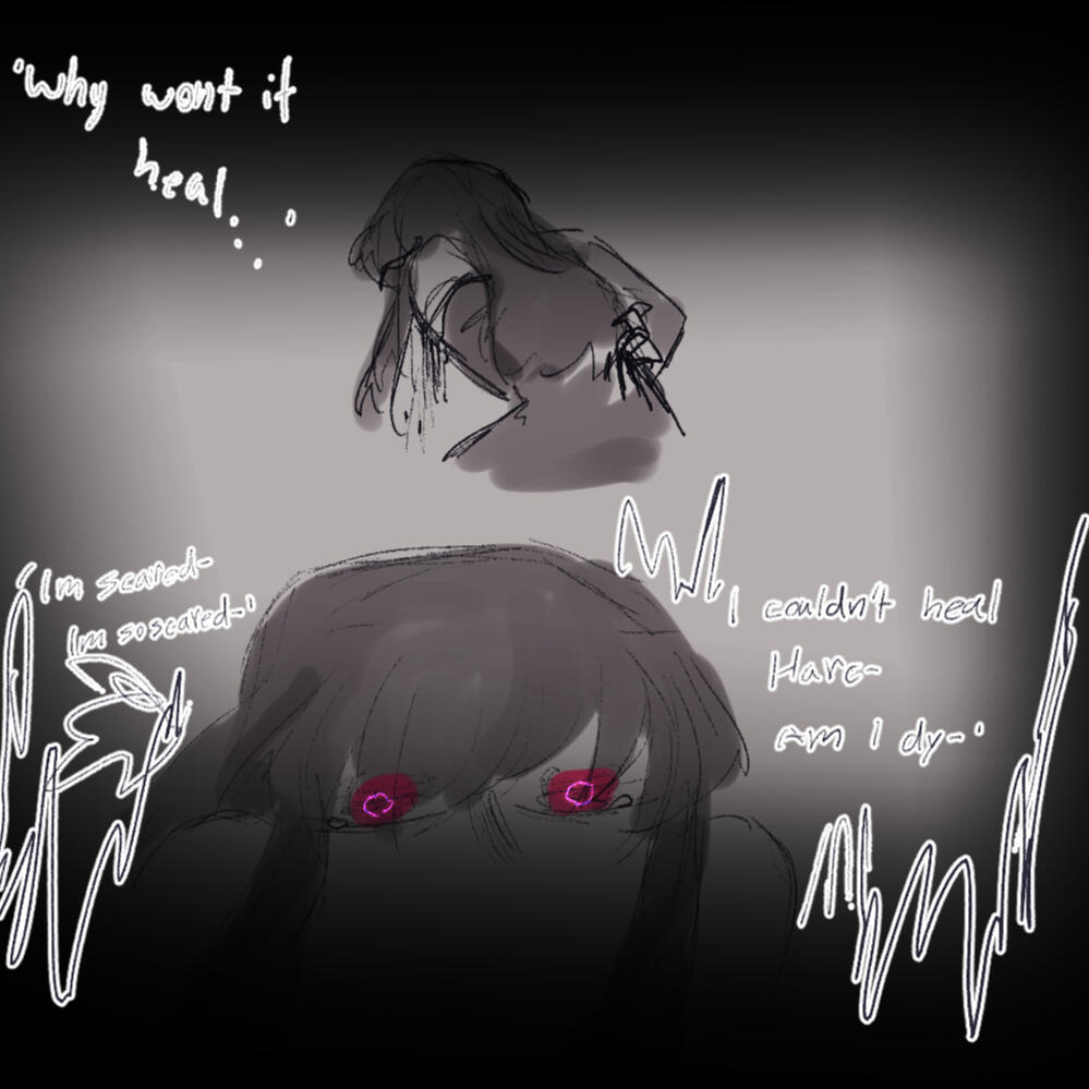 Regret washed over her. Her words were so cruel, and she spoke them to someone she considered her best friend, someone she claimed to care for. Reaching a shaky hand out of the rubble, Xiela looked to Rella.Her voice was weak and breathless, “N-no.. wait.. I'm sorry, I didn’t—”