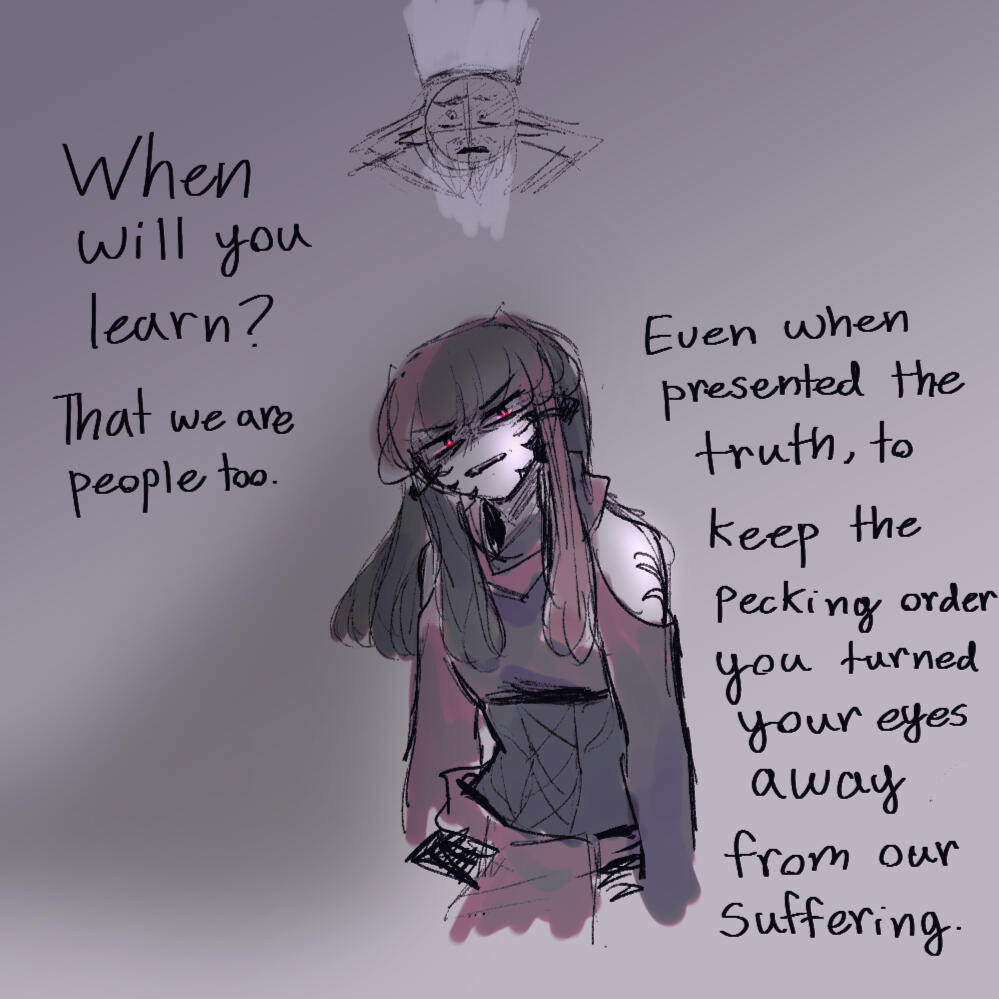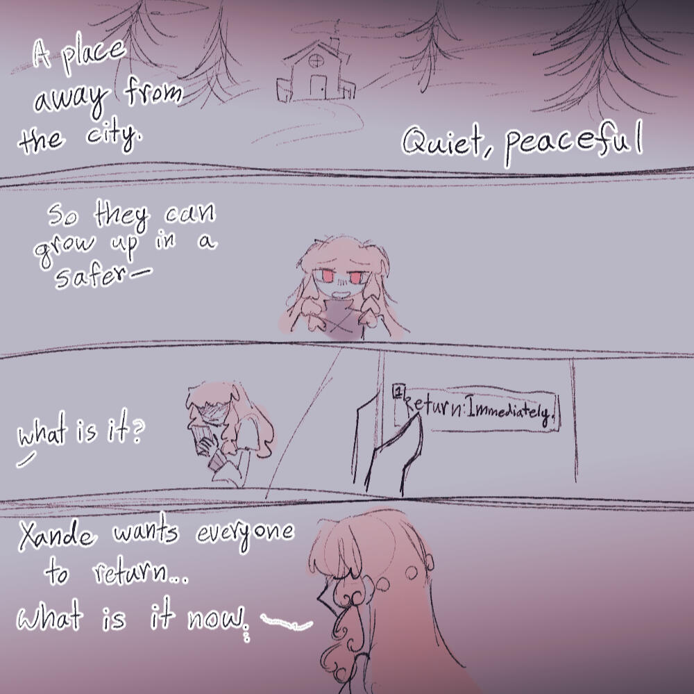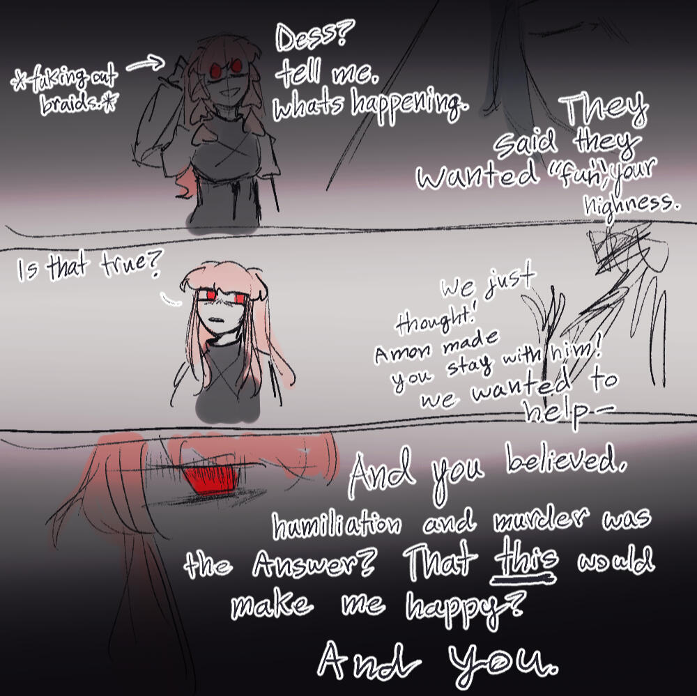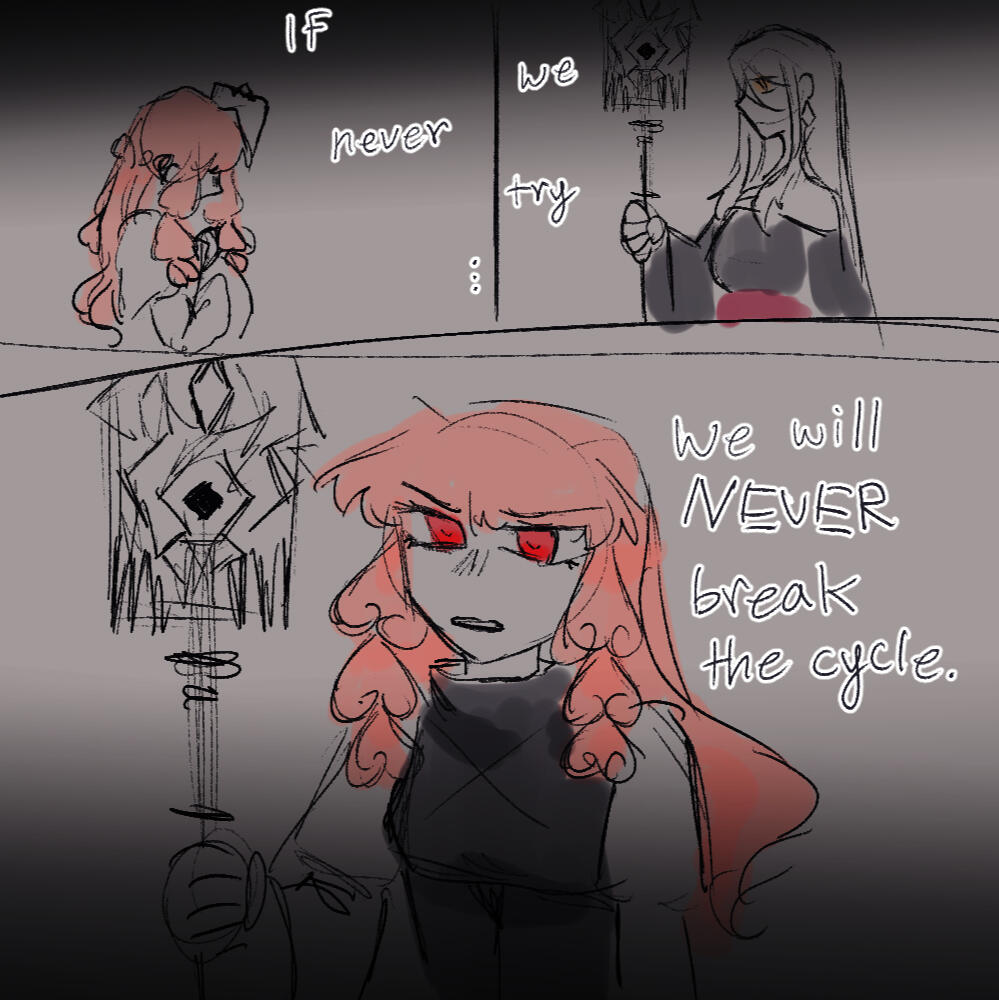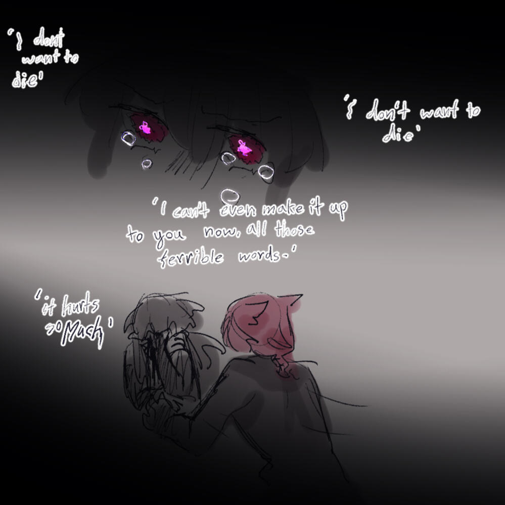 Regret washed over her. Her words were so cruel, and she spoke them to someone she considered her best friend, someone she claimed to care for. Reaching a shaky hand out of the rubble, Xiela looked to Rella.Her voice was weak and breathless, “N-no.. wait.. I'm sorry, I didn’t—”