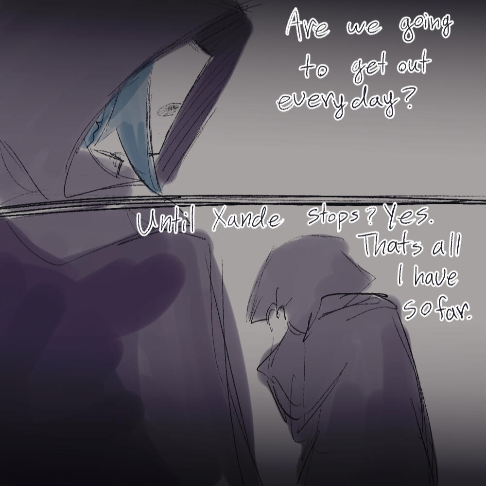 “You're not focused.” Rella said in a neutral tone, offering her a hand.“I am completely focused. Again. Come on!” Xiela said through gritted teeth.