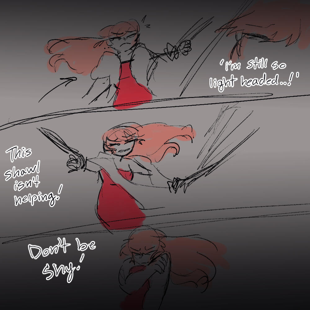 "Show off. That's all you ever do when we fight." Annoyance is clear in Xiela's voice."I'm trying to help you improve, and in order to do so, you need to be aware of your flaws and openings." Rella calmly explained.Xiela stumbled back onto her feet, struggling to hold herself up.