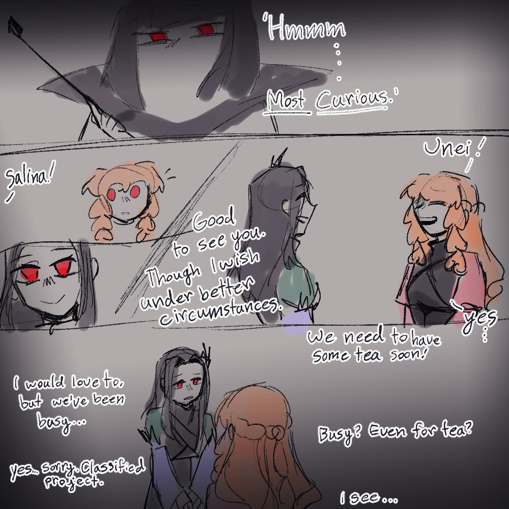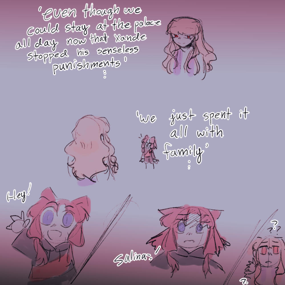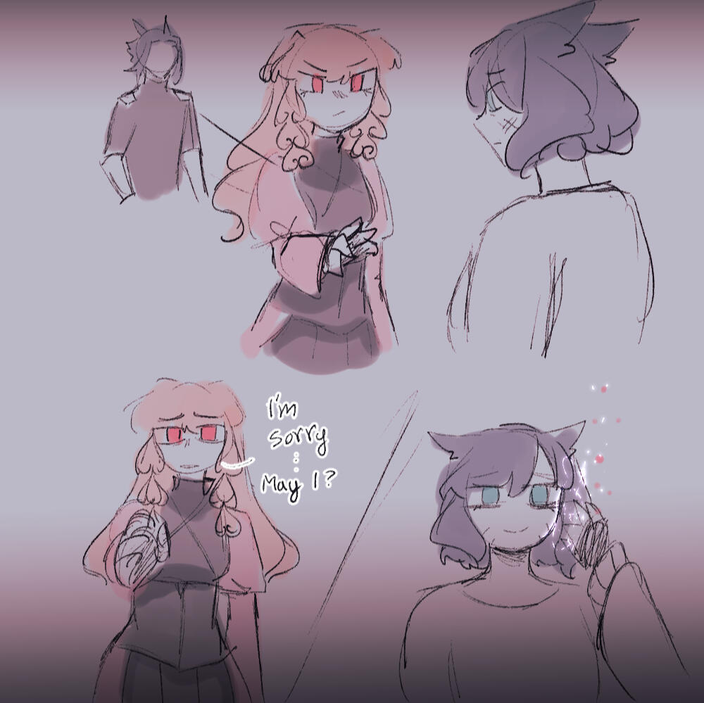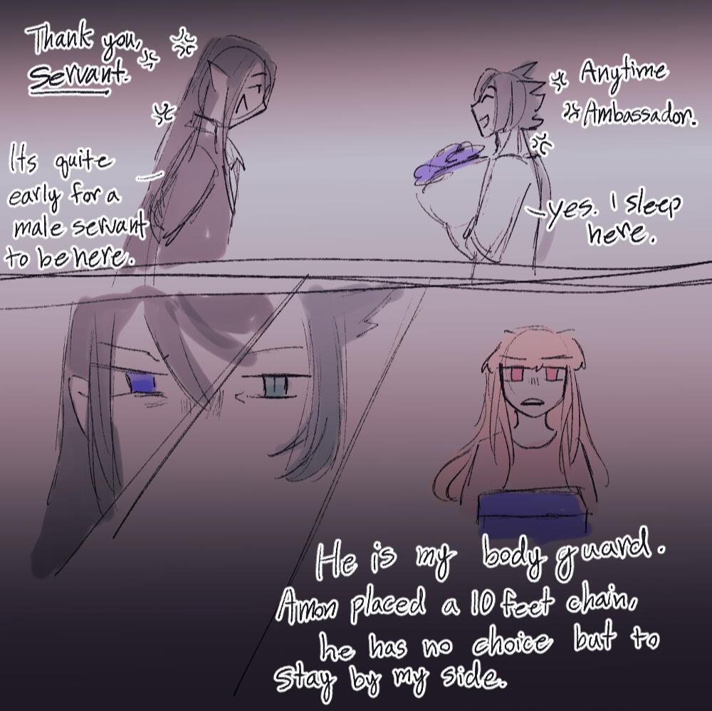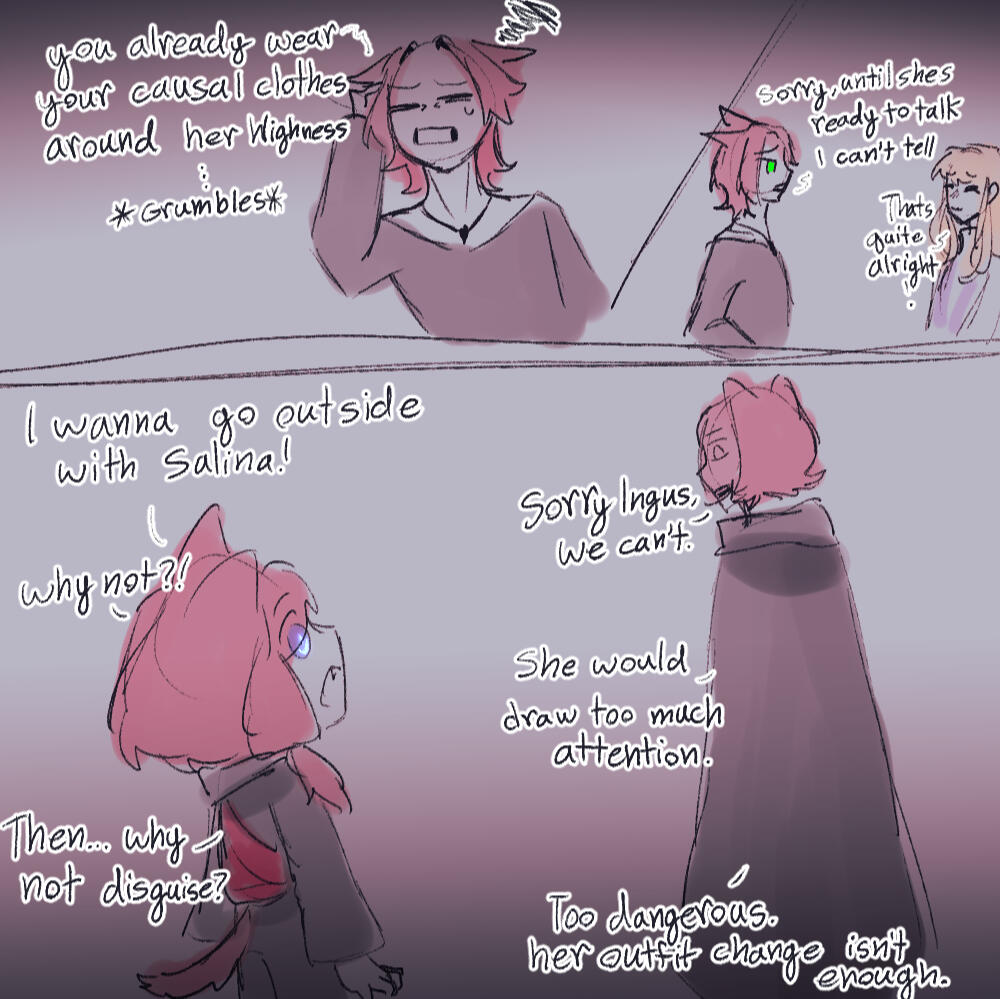 “You always seem to criticize me, rather than help me.” Starting to get back up from the ground readying her next offensive.“I'm trying to help you, Xiela.” Rella's voice still neutral, her demeanor unphased by her aggressive companion.“What about…” swinging another kick and missing, “...in actual battle?! You don't help fight, and now…" Her voice became even more heated, “...you're barely even there!!”“Xiela, you asked me not to assist. I'm tired of watching from the sidelines, and I would rather be somewhere where I can be of use.”“And what? You're just going to listen to whatever I say?""I made a promise to you." Rella said with a slight sadness."You speak of a promise I don't even remember! And for what..?! You leave my fights to be with him? To be with Urianger?! Is he really just your friend? What is he to you, that I'm not?!”“Xiela.” Rella's calm demeanor, turning into irritation. Making it clear in her tone and a sign to Xiela to let it go."You would follow in his lies if Urianger asked you to, wouldn't you?” Xiela yelled.Not a moment passed, Rella said with no hesitation, “I would.““I hate you!! I hate him! I hate everyone in this stupid place!!” Continuing to throw her tantrum like a child who didn't get their way. He was getting all of Rella's attention that Xiela wanted for herself. Rella was reaching her limit with her.Staring daggers, walking closer to Rella, her hand pointing at her accusingly, Xiela threw Rella's warning to the side.“You think you're so much better than me! When actually, you're hiding what you really are! Does he know?!” Xiela kept poking at Rella's emotional wounds to get a reaction.