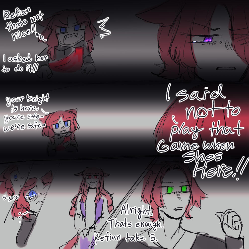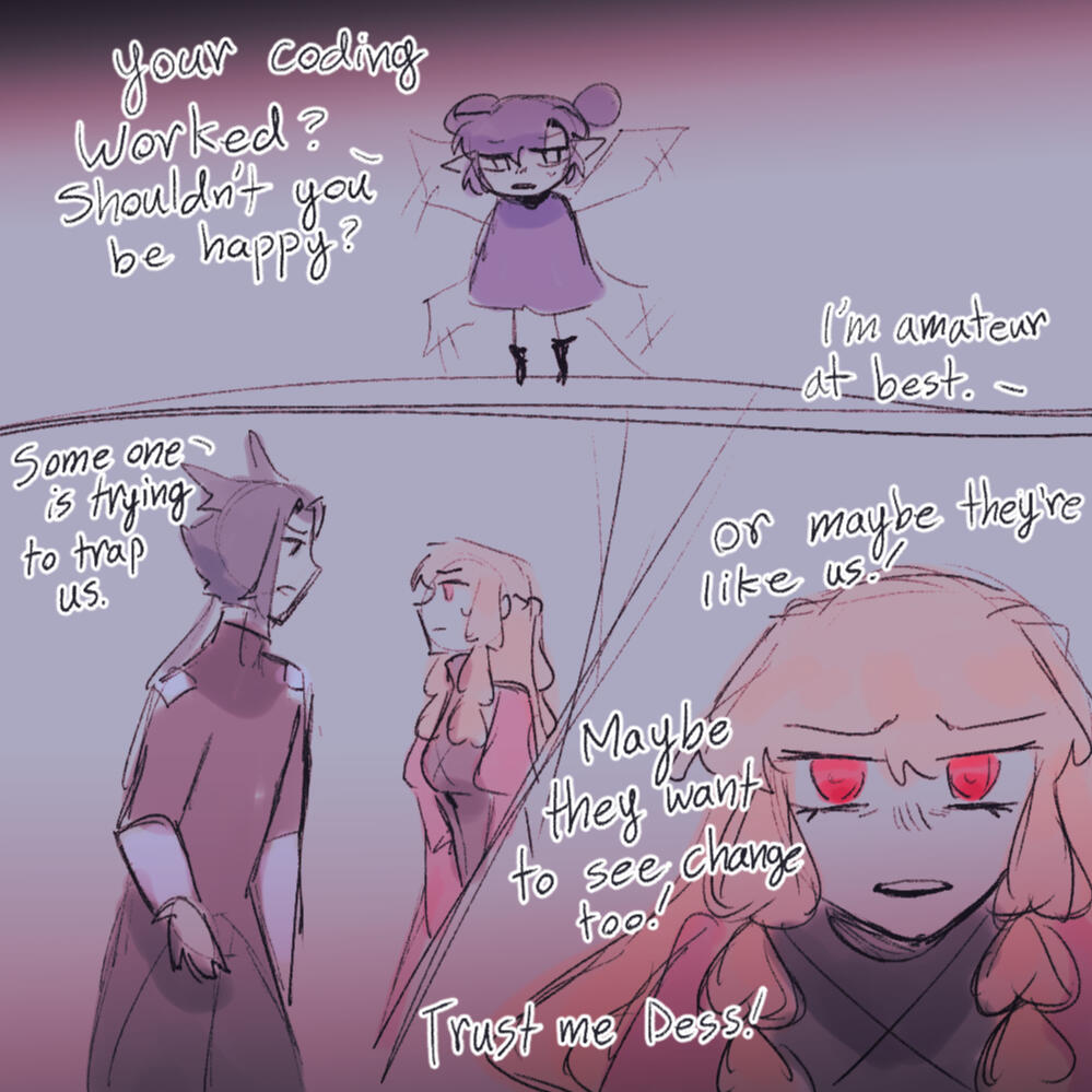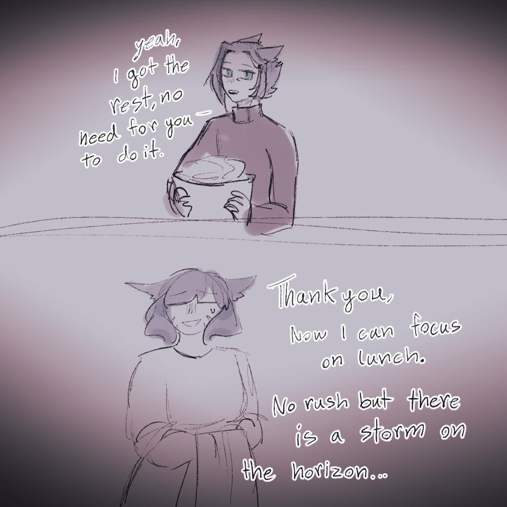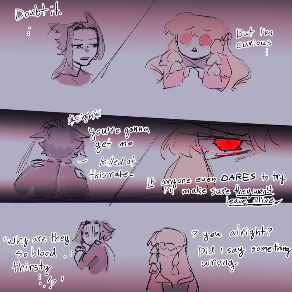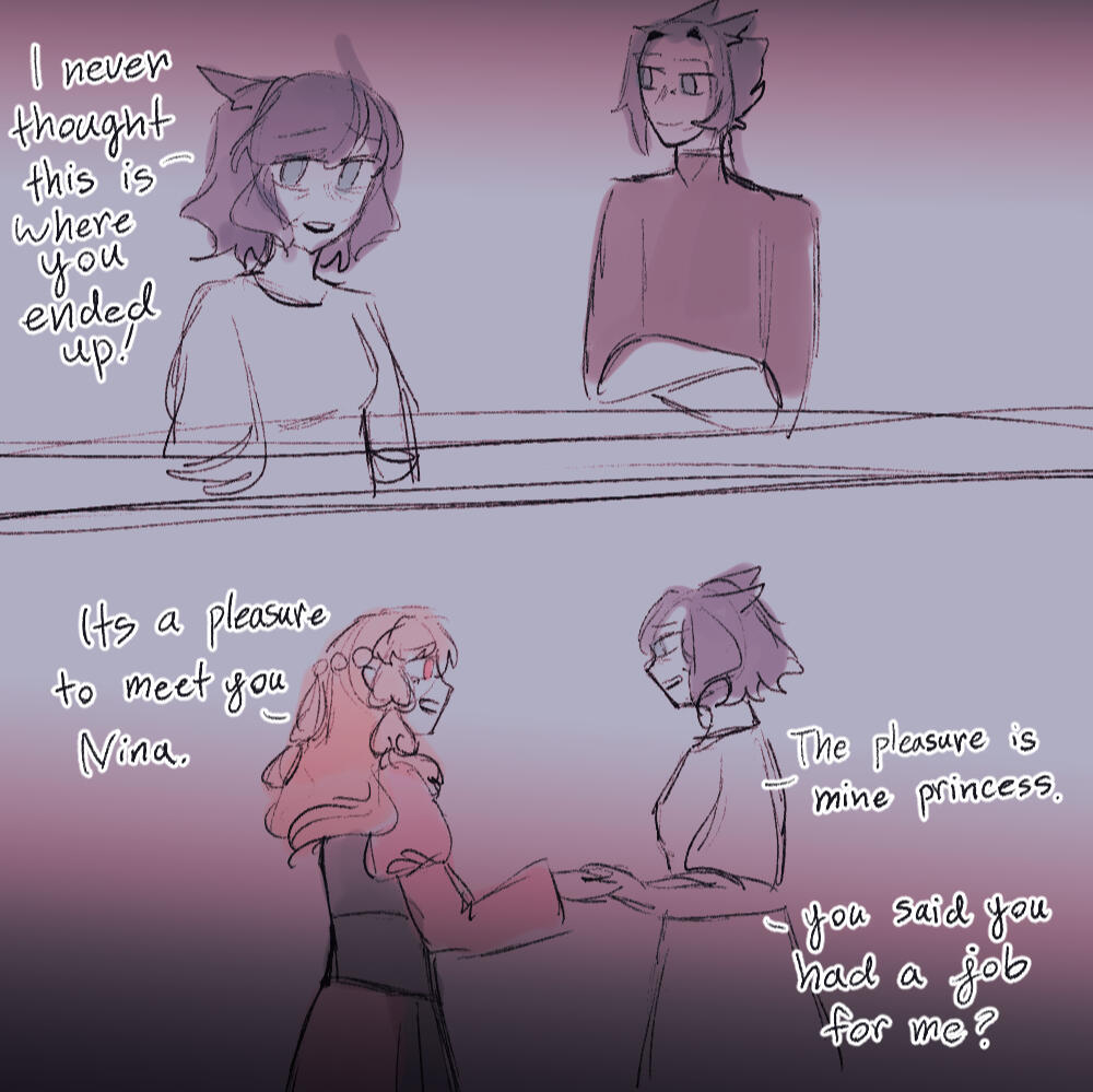 “You always seem to criticize me, rather than help me.” Starting to get back up from the ground readying her next offensive.“I'm trying to help you, Xiela.” Rella's voice still neutral, her demeanor unphased by her aggressive companion.“What about…” swinging another kick and missing, “...in actual battle?! You don't help fight, and now…" Her voice became even more heated, “...you're barely even there!!”“Xiela, you asked me not to assist. I'm tired of watching from the sidelines, and I would rather be somewhere where I can be of use.”“And what? You're just going to listen to whatever I say?""I made a promise to you." Rella said with a slight sadness."You speak of a promise I don't even remember! And for what..?! You leave my fights to be with him? To be with Urianger?! Is he really just your friend? What is he to you, that I'm not?!”“Xiela.” Rella's calm demeanor, turning into irritation. Making it clear in her tone and a sign to Xiela to let it go."You would follow in his lies if Urianger asked you to, wouldn't you?” Xiela yelled.Not a moment passed, Rella said with no hesitation, “I would.““I hate you!! I hate him! I hate everyone in this stupid place!!” Continuing to throw her tantrum like a child who didn't get their way. He was getting all of Rella's attention that Xiela wanted for herself. Rella was reaching her limit with her.Staring daggers, walking closer to Rella, her hand pointing at her accusingly, Xiela threw Rella's warning to the side.“You think you're so much better than me! When actually, you're hiding what you really are! Does he know?!” Xiela kept poking at Rella's emotional wounds to get a reaction.