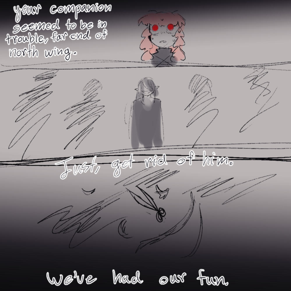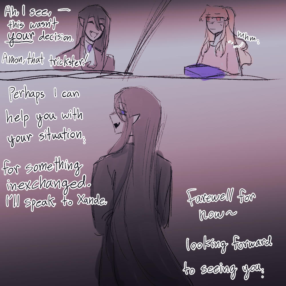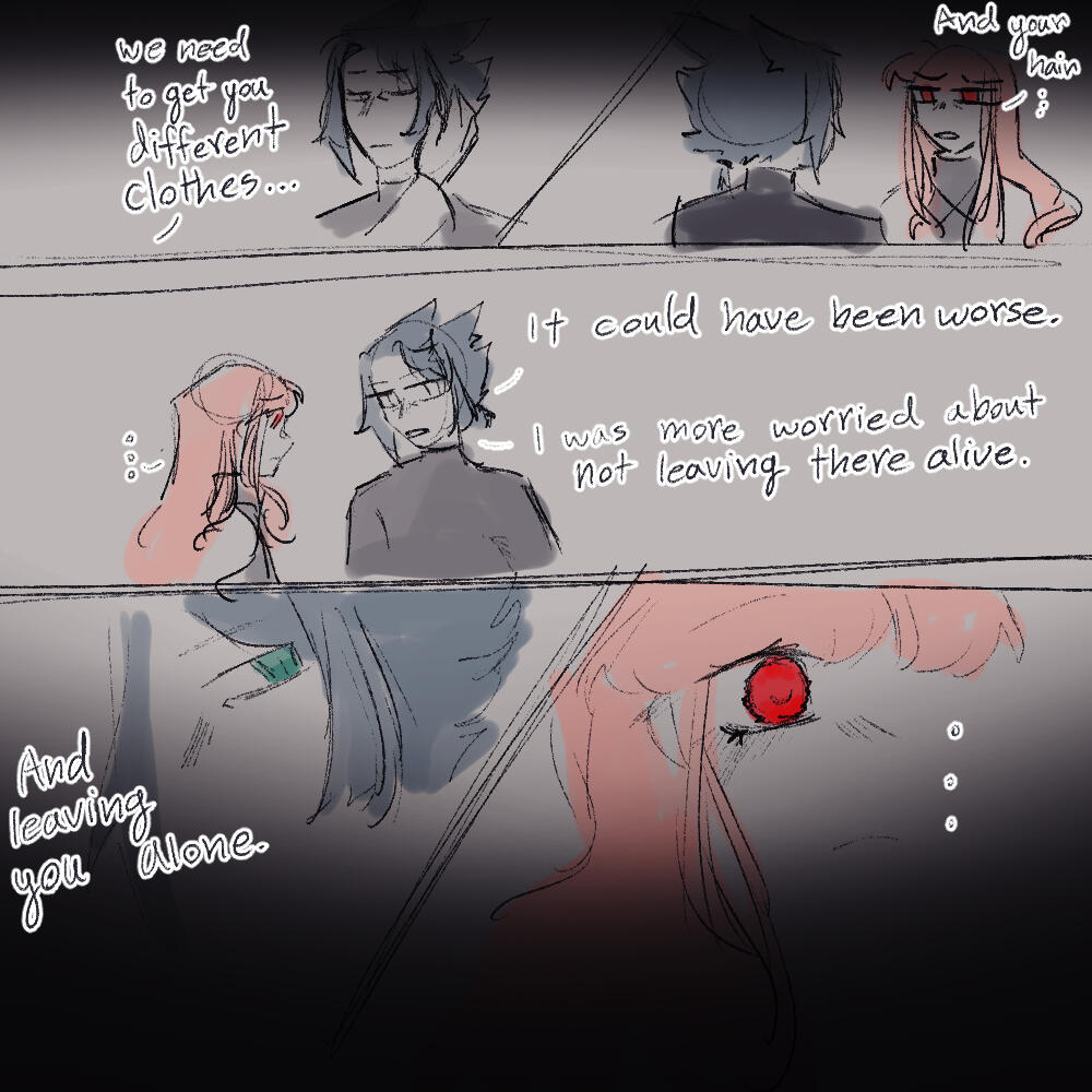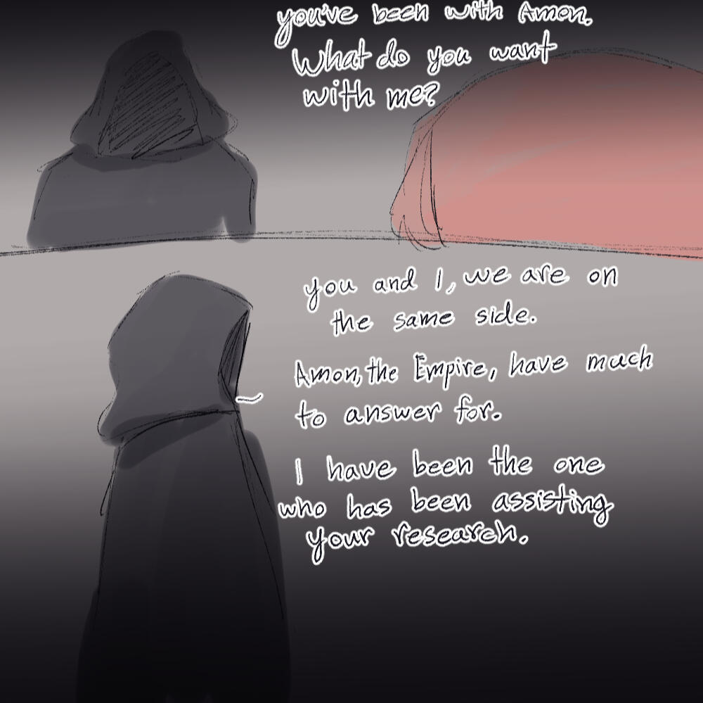 “—Don’t.”This time, Xiela listened.Xiela could no longer fight back the impending darkness. After repeated attempts to stand she finally fainted and collapsed to the ground, leaving the observing figure no choice but to lend their aid.