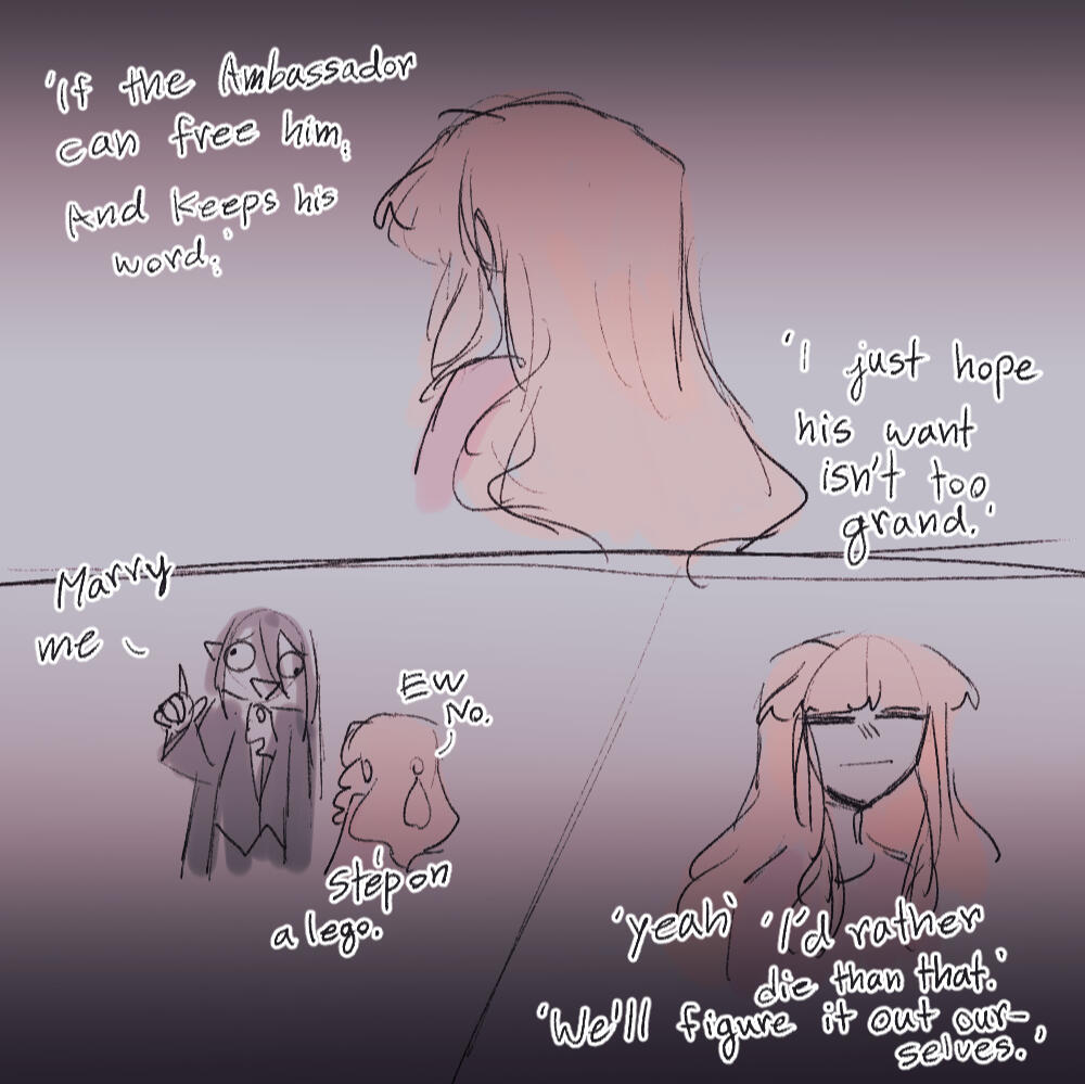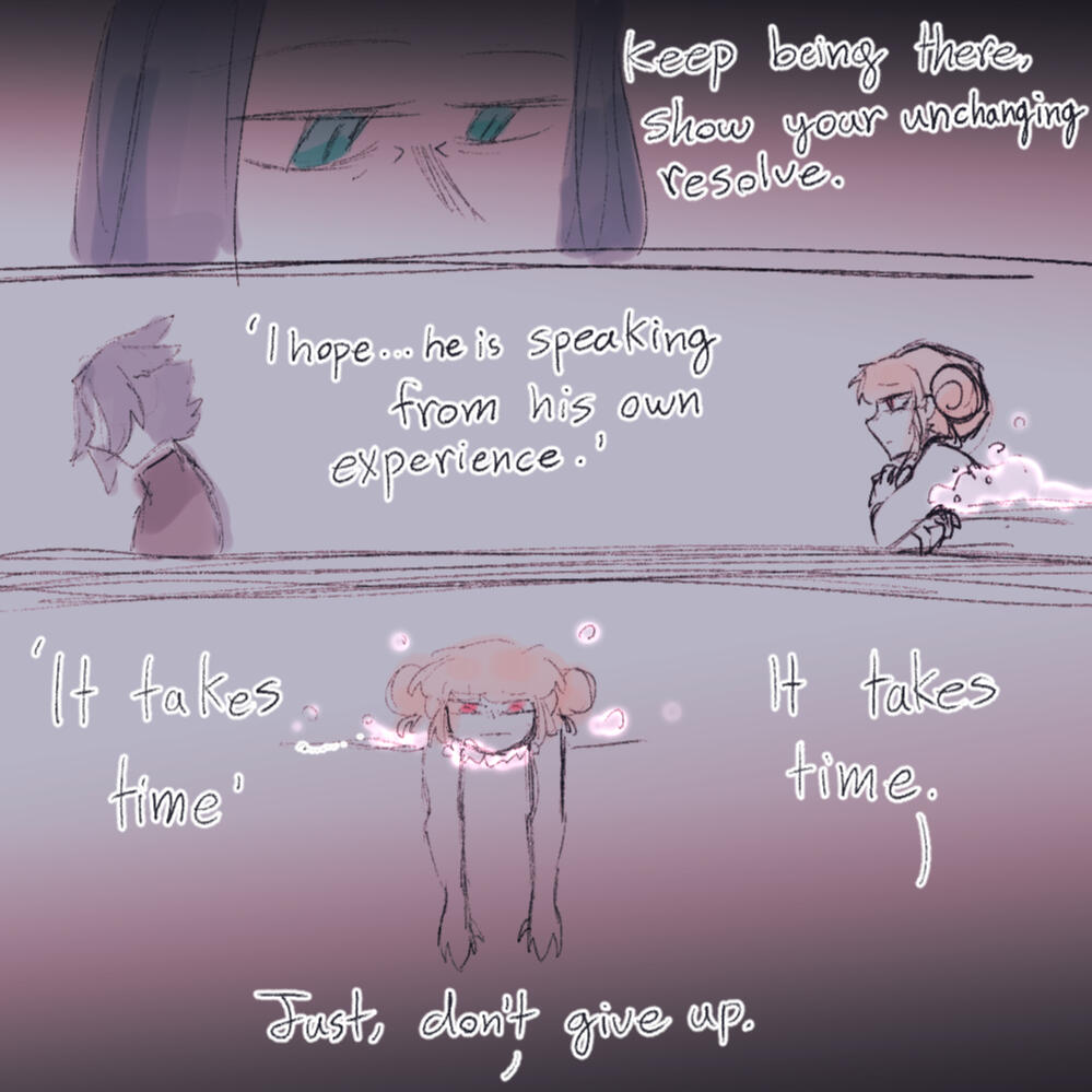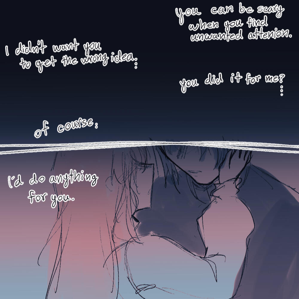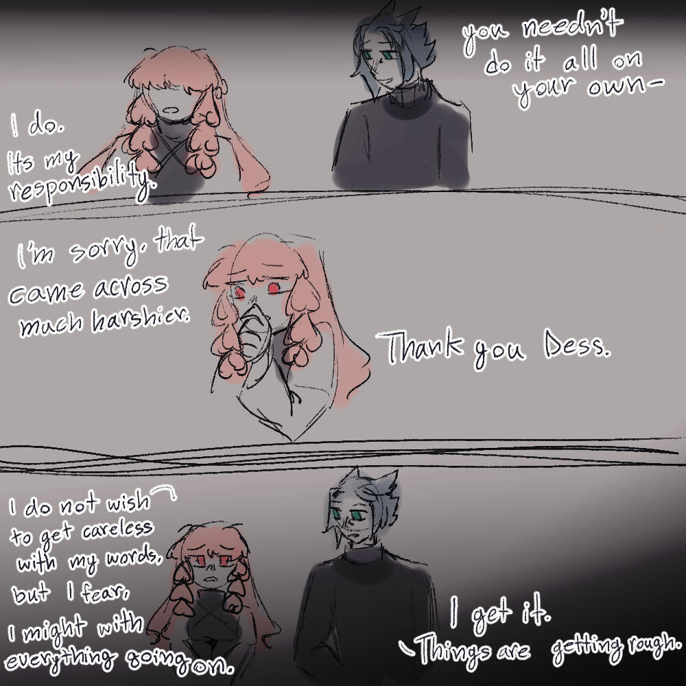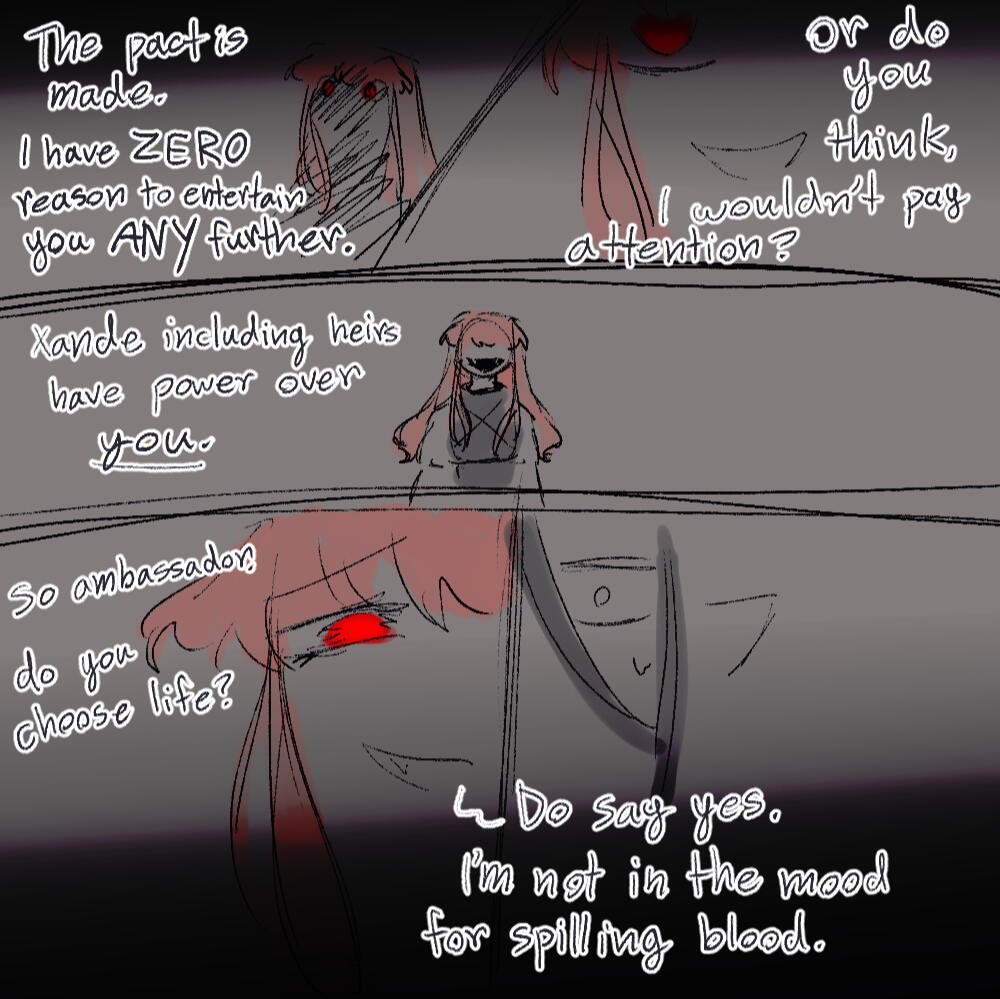 “—Don’t.”This time, Xiela listened.Xiela could no longer fight back the impending darkness. After repeated attempts to stand she finally fainted and collapsed to the ground, leaving the observing figure no choice but to lend their aid.