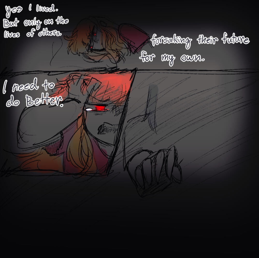 Regret washed over her. Her words were so cruel, and she spoke them to someone she considered her best friend, someone she claimed to care for. Reaching a shaky hand out of the rubble, Xiela looked to Rella.Her voice was weak and breathless, “N-no.. wait.. I'm sorry, I didn’t—”